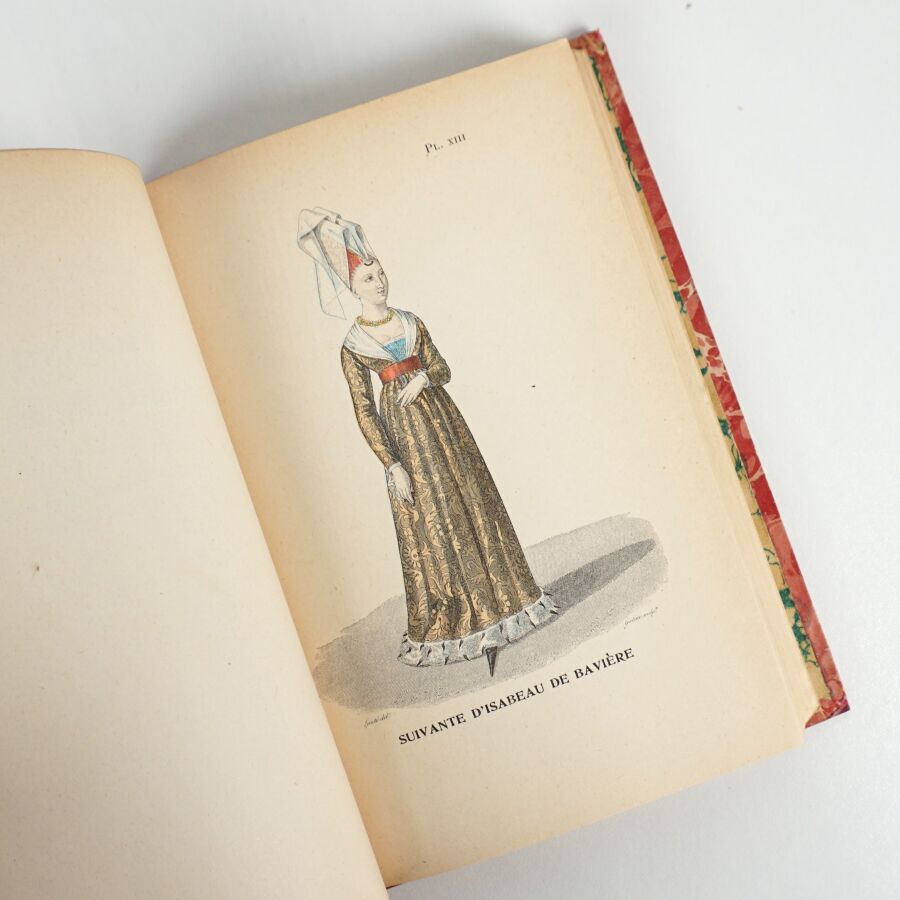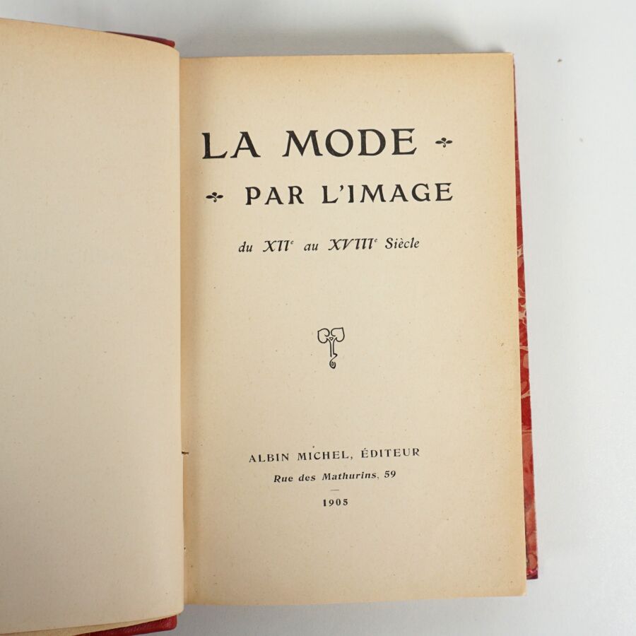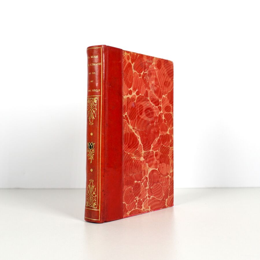 [LANTÉ (Louis Marie) & GATINE (Georges Jacques)]. La Mode par l'image, du XIIe au XVIIIe siècle. Paris, Albin Michel, 1905. In-12 demi-veau rouge, dos lisse orné, petite fleur mosaïquée en box noir, tête dorée, couvertures conservées (reliure de l'époque).