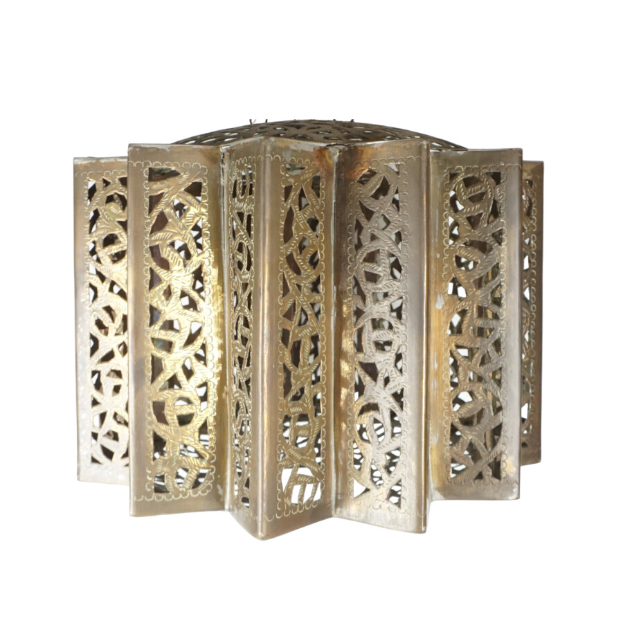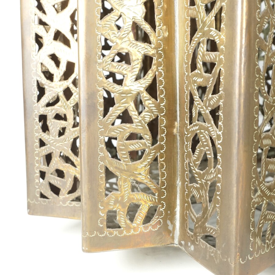 Lanterne décorative, métal ajouré à décor stylisé, dans le goût de l'Orient, H. 32 cm (non électrifiée) (usures).