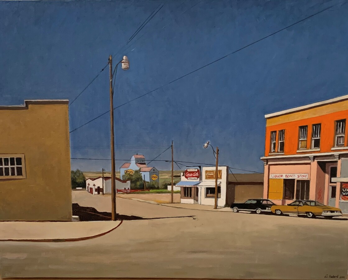 Laurent HUBERT (1963),"Rue déserte", huile sur toile, signée en bas à droite, 50 x 65 cm.