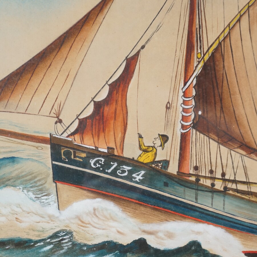 LAYEC (XXe), "Voilier dans la houle", aquarelle et rehauts de gouache sur papier, signée en bas à droite, 49 x 63 cm.