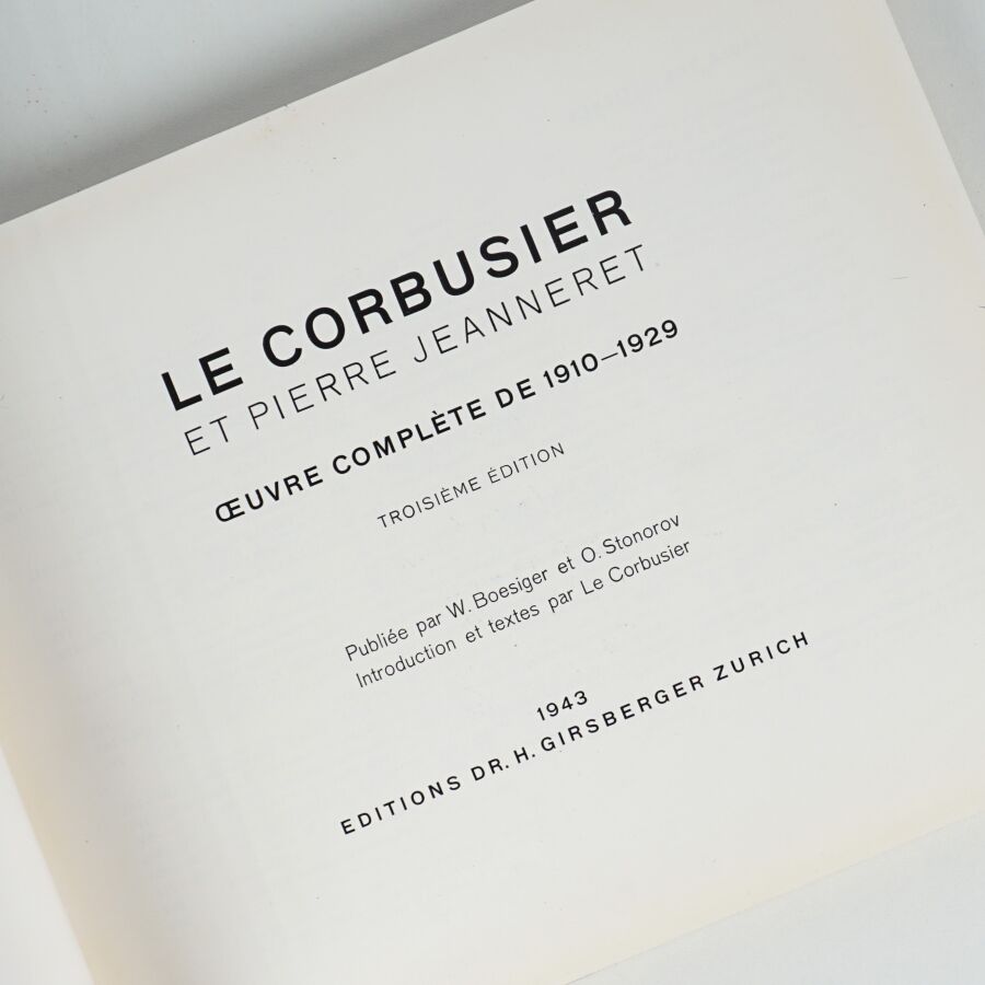 LE CORBUSIER (Charles-Édouard Jeanneret-Gris, dit). Le Corbusier et Pierre Jeanneret. OEuvre complète de 1910-1929. Troisième édition publiée par W. Boesiger et O. Stonorov. Introduction et textes par Le Corbusier. Zurich, Dr. H. Gisberger, 1943. Petit in-4 oblong, cartonnage éditeur. Dos abîmé. Qqs piqûres sur les gardes.