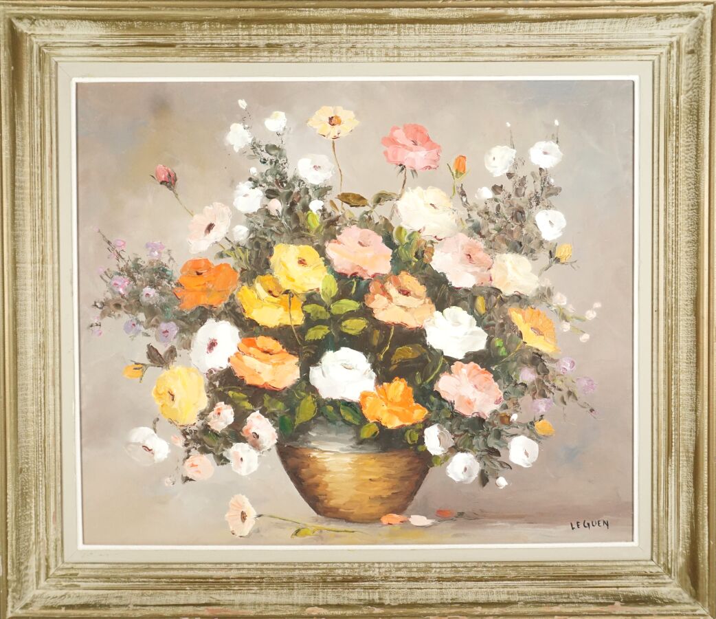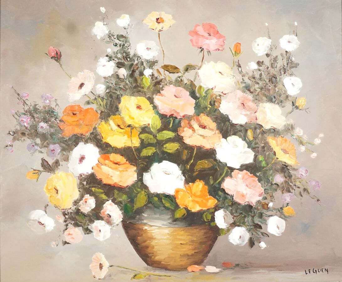 LE GUEN (XXe), "Vase de fleurs des champs", huile sur toile, signée en bas à droite, 45 x 54 cm.