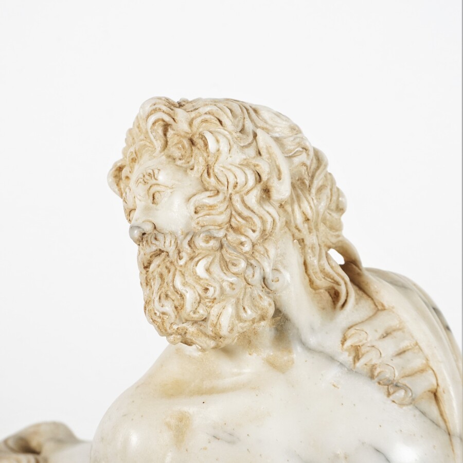 Le vieux centaure de Furietti, sculpture en marbre blanc, d'après l'Antique, 20ème siècle, H. 65 cm x L. 38 cm (quelques égrenures, un éclat sur la croupe, restaurations à l'une des pattes arrières).