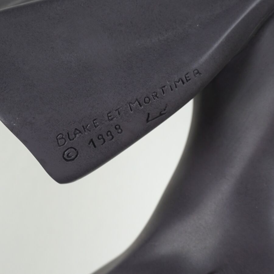 LEBLON-DELIENNE : "Les aventures de Blake et Mortimer - Guinea Pig", figurine en résine polychrome, signée et numérotée 792/999, présentée dans son carton d'origine, H. Totale : 24 cm (complet de son socle et son chapeau, carton annoté).
