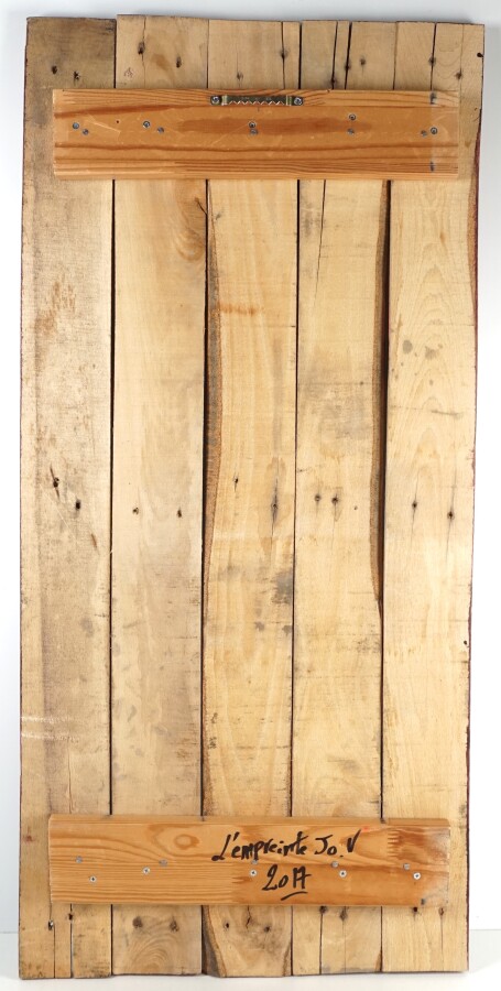 L'EMPREINTE JO V (1970), "Frida Colors", aérosol, acrylique sur lattes de palette de bois assemblées, signée en bas à droite, 81 x 38 cm.