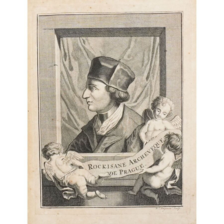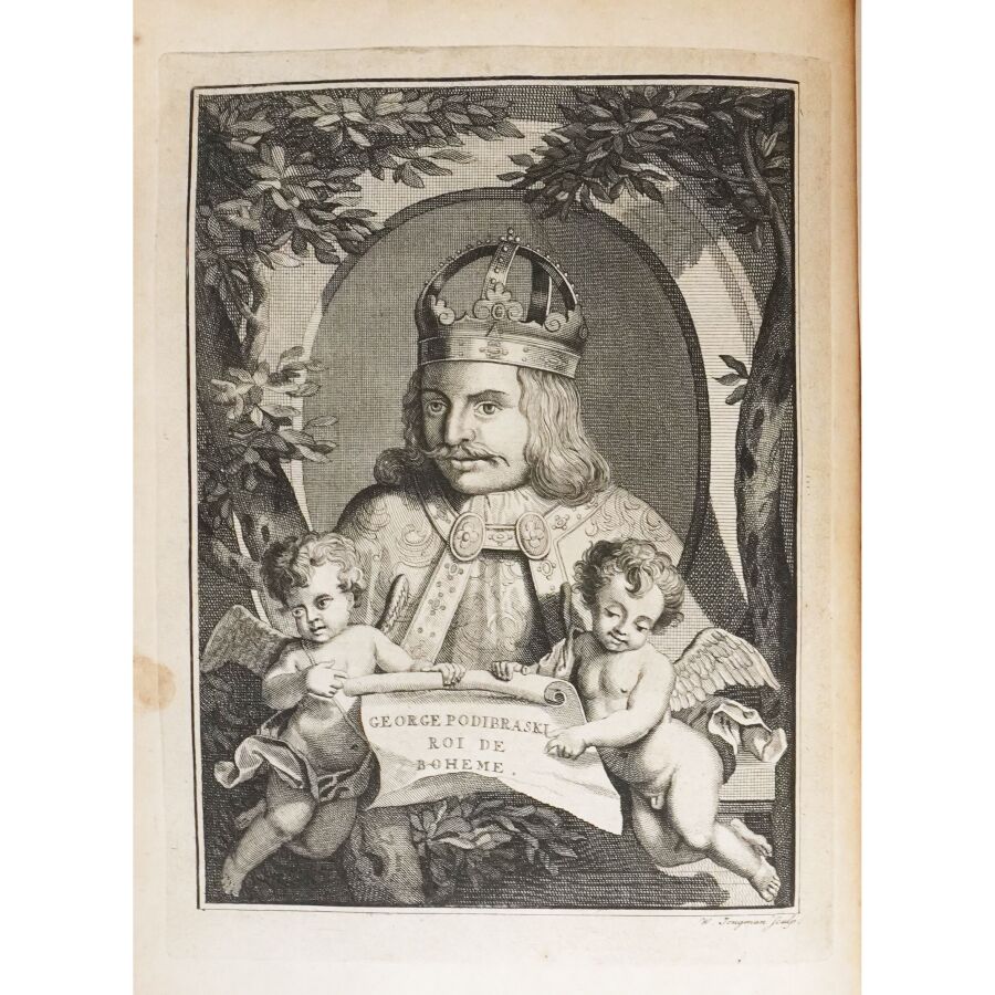 Édition posthume ornée de dix portraits hors-textes gravés par Filleul et Scotin : Jean Ziska, chef des Hussites, Jean de Rockisane, archevêque de Prague, Albert Empereur, roi de Hongrie et de Bohême, Ladislas, roi de Hongrie et de Bohême, George Castriot, roi d'Albanie, etc. Ornements, bandeaux, lettrines et culs-de-lampe pour chacun des 24 livres composant l'ouvrage.