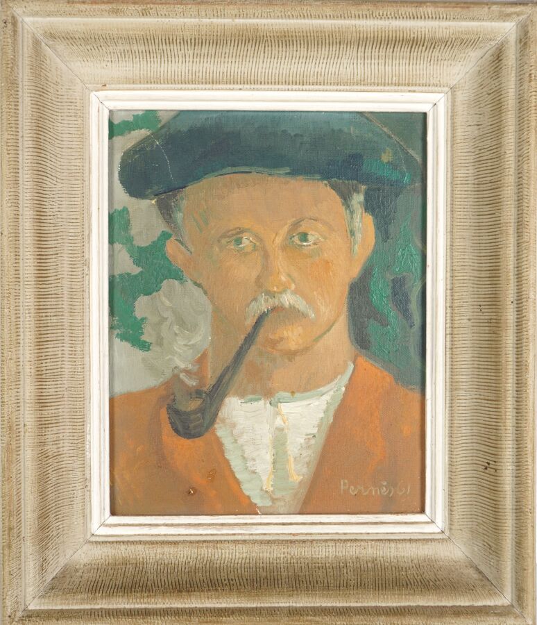 Léo PERNES (1912-1980), "Marin à la pipe" 61, huile sur toile, signée et datée en bas à droite, 27 x 22 cm.