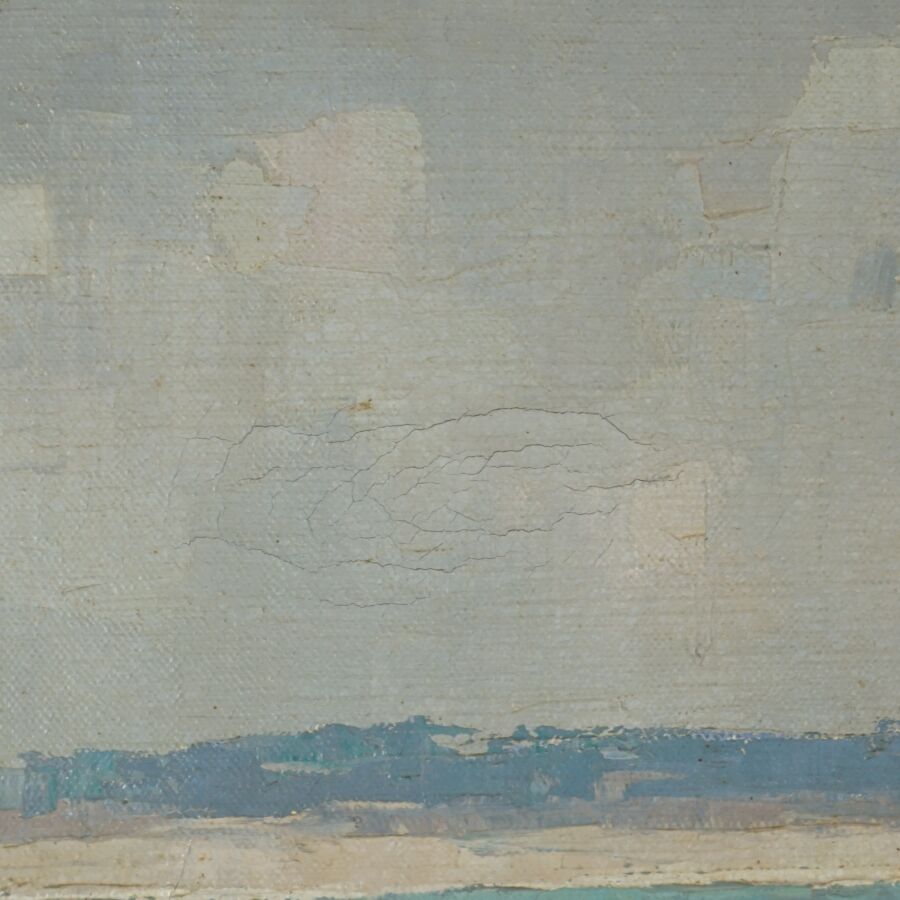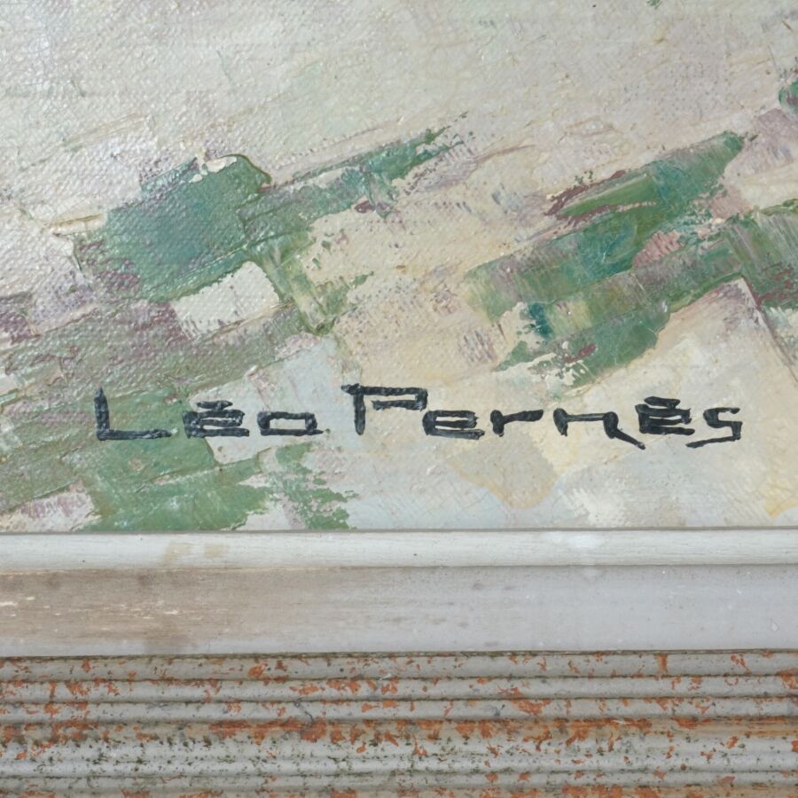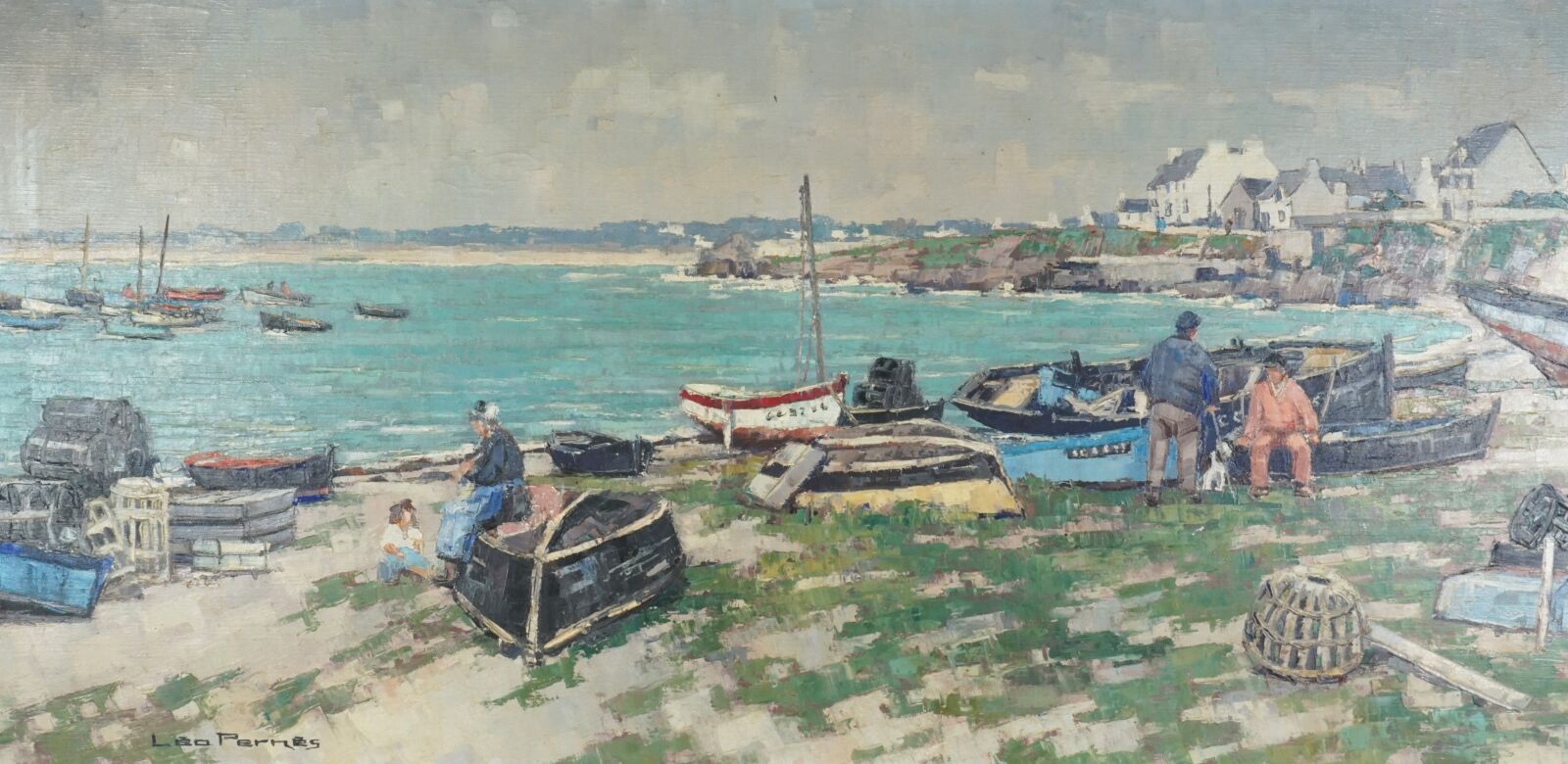 Léo PERNES (1912-1980), "Pointe de Trévignon", huile sur toile signée en bas à gauche, titrée au dos, 50 x 100 cm (quelques craquelures).