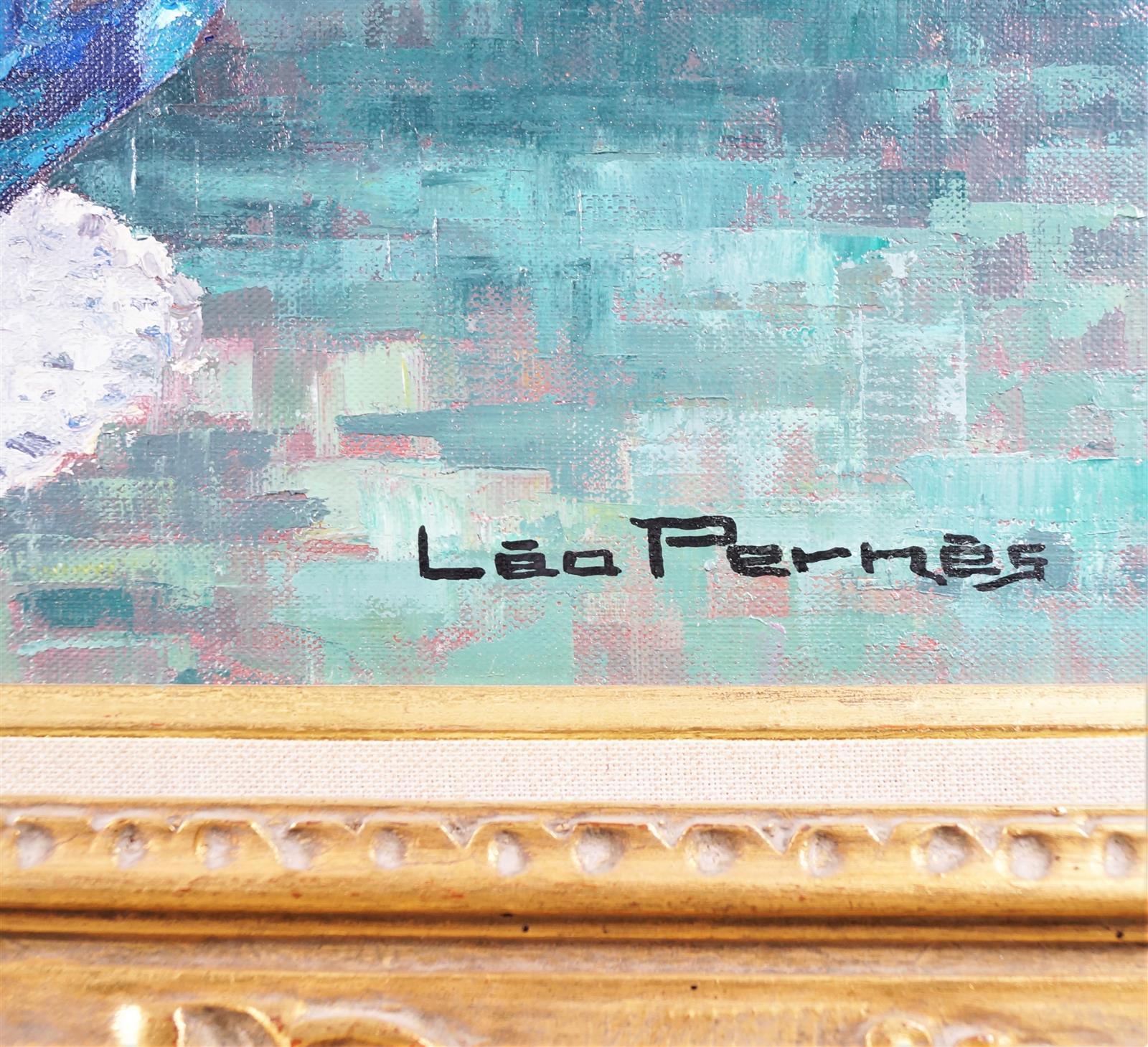 Léo PERNES (XXe), "Vase de coquelicots", huile sur toile, signée en bas à droite, 60 cm x 50 cm.