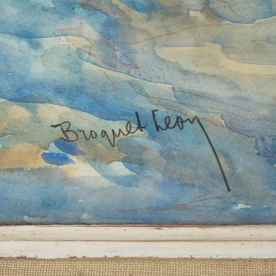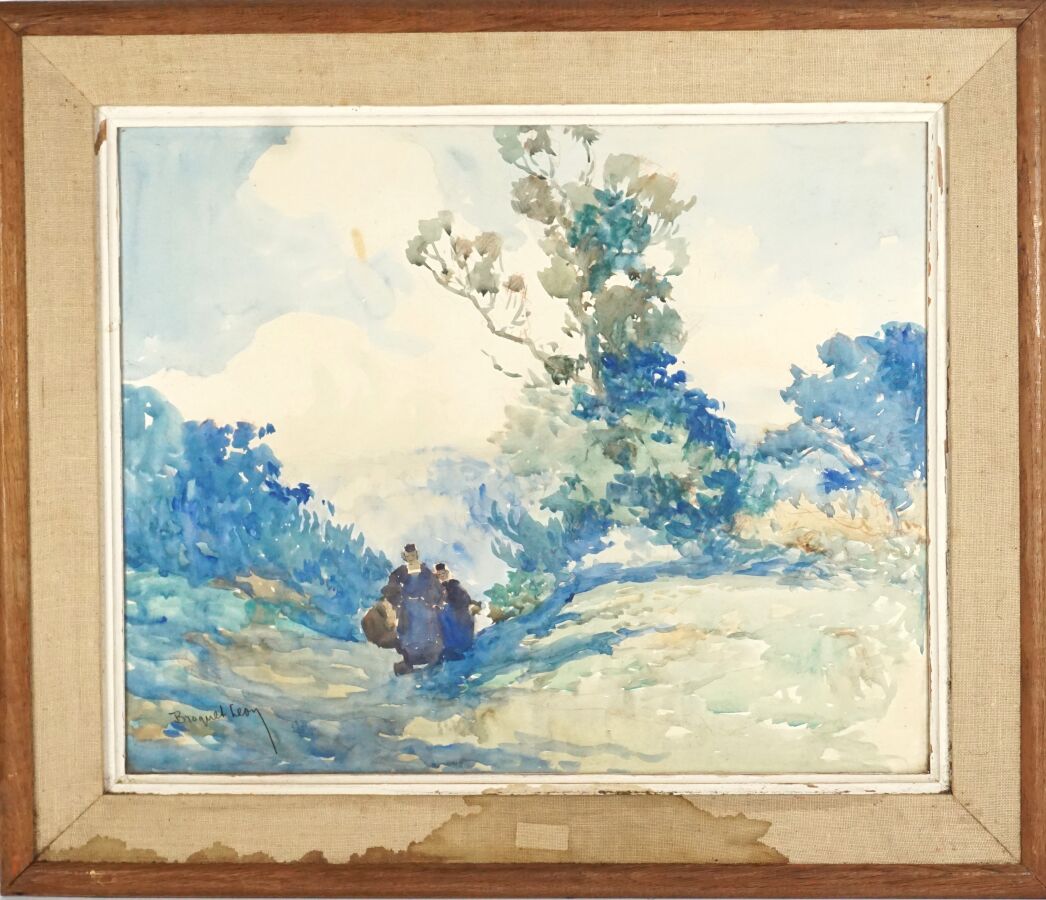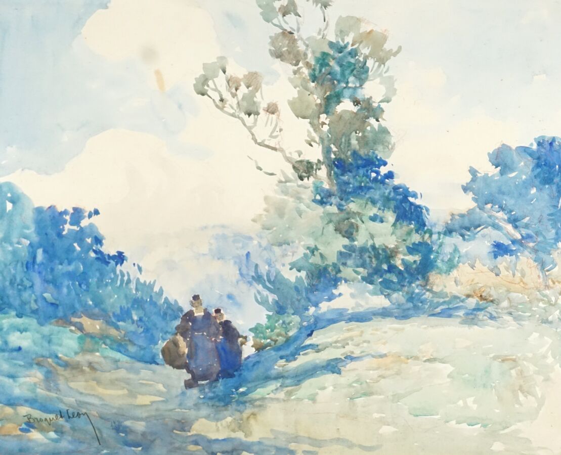 Léon BROQUET (1869-1935), "Sur le chemin", aquarelle signée en bas à gauche, 44 x 54.5 cm (à vue).