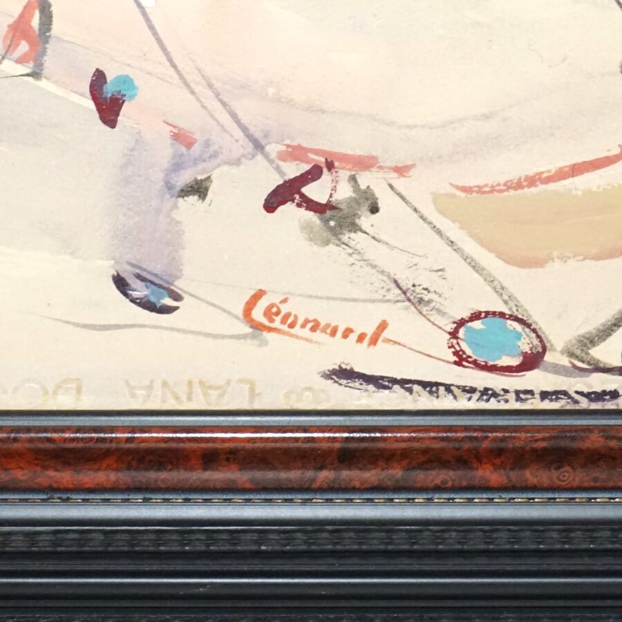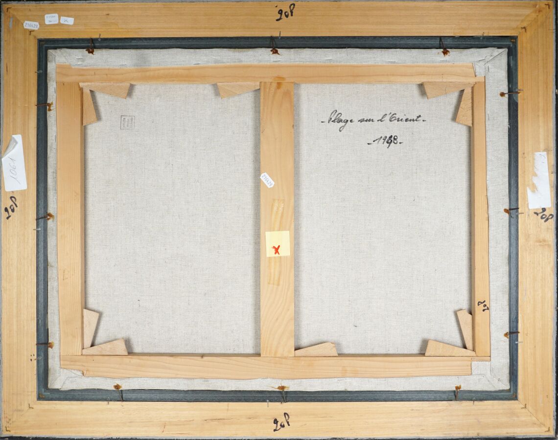 LEONARD (XXe), "Plage sur Lorient" 1948, huile sur papier marouflée toile signée en bas au centre, titrée et datée au dos, 54 x 73 cm.