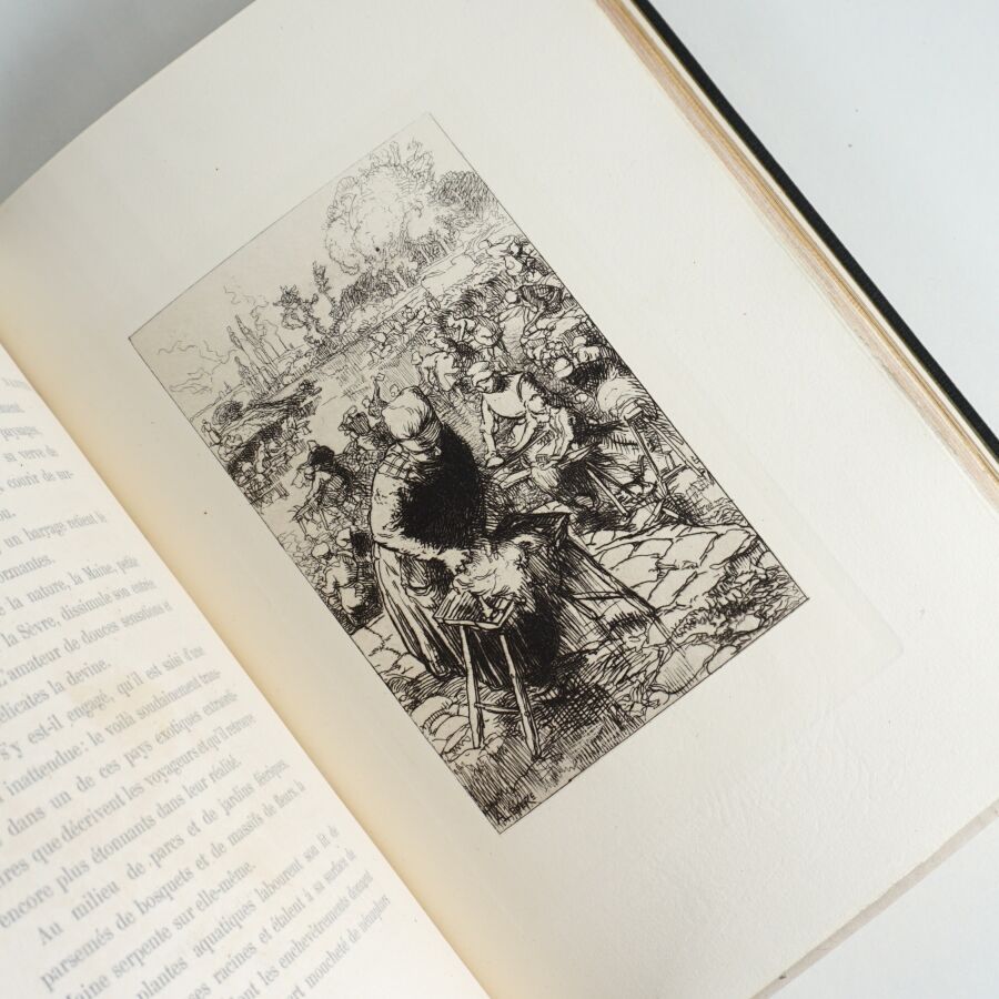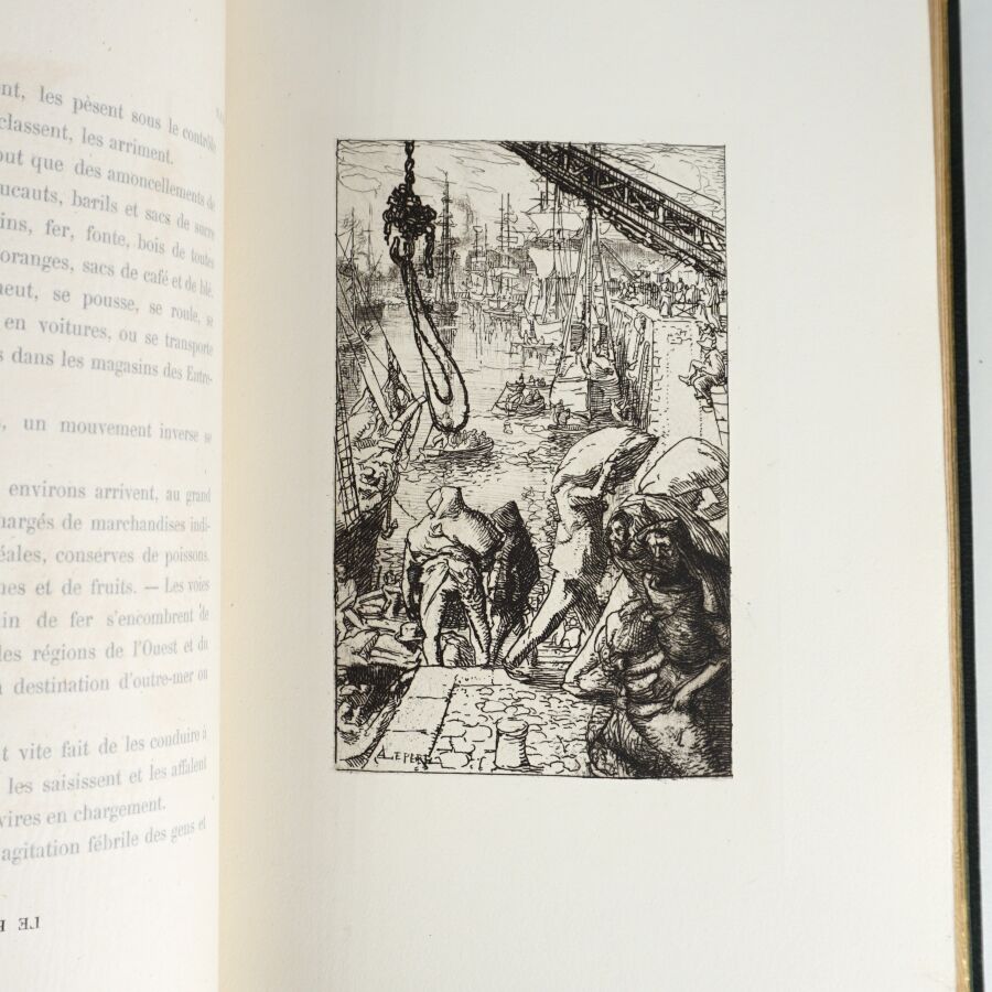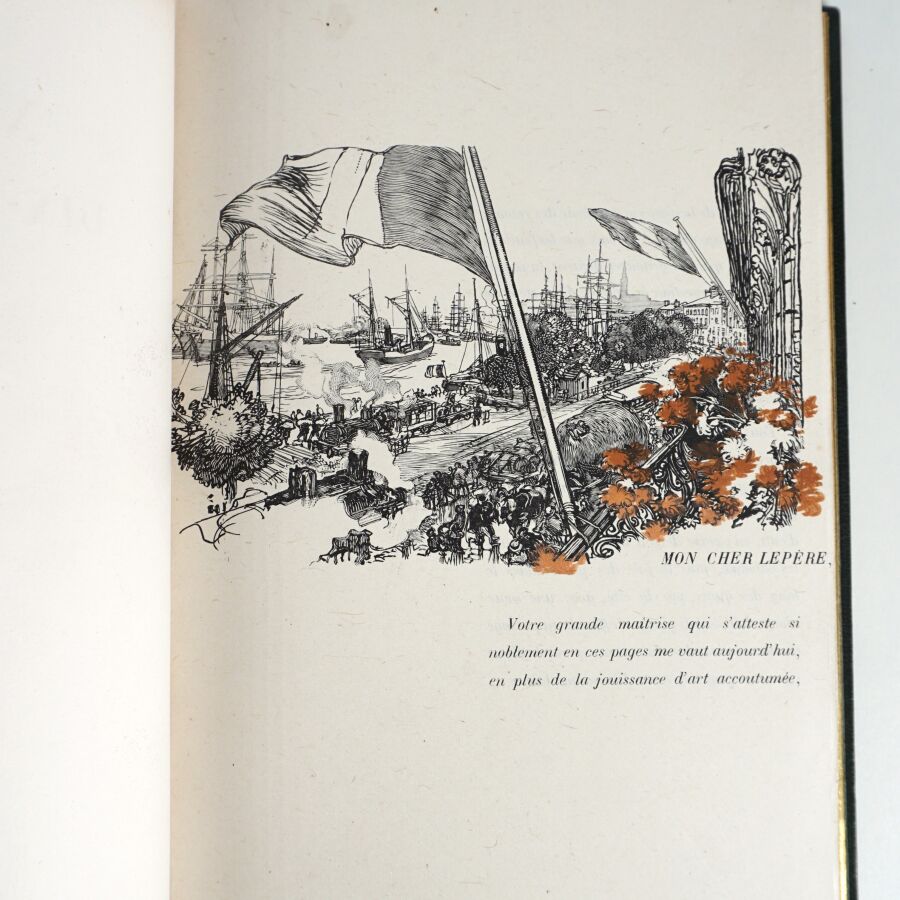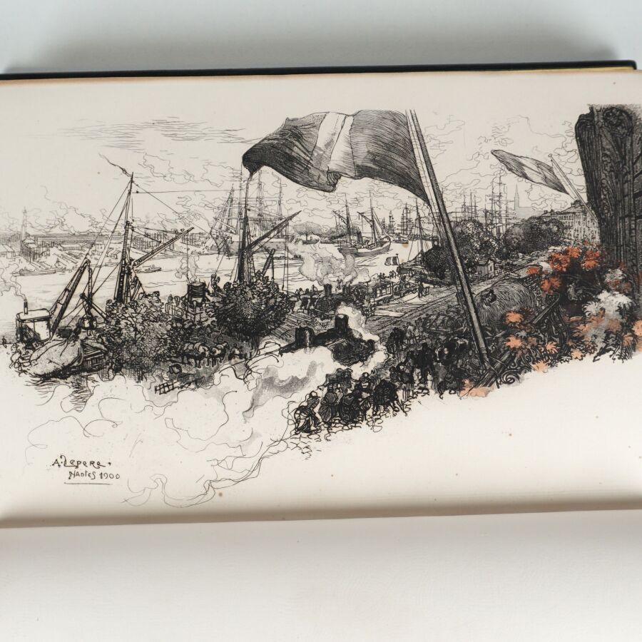 Exemplaire enrichi d'une gravure de Lepère figurant le port de Nantes (1 f. volant reprenant l'en-tête de la préface gravé sur cuivre et bois), de 6 planches en 2e état, 3 en 3e état et du prospectus-spécimen.