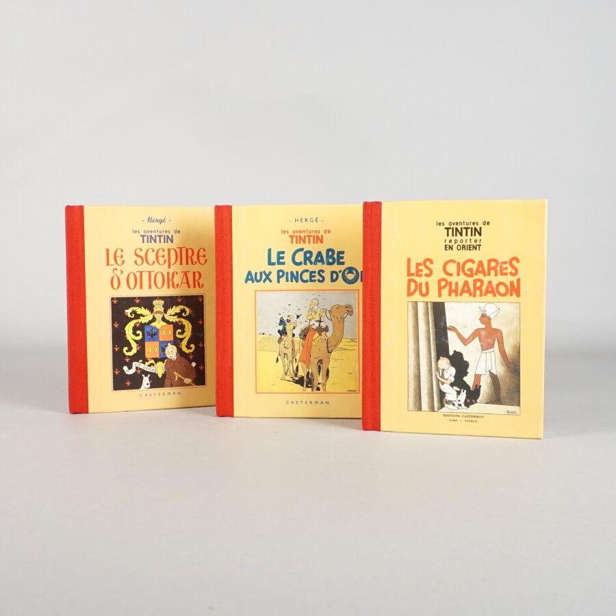 LES AVENTURES DE TINTIN, éd. PETITS FORMATS, 1986 : Lot de 3 albums comprenant Les cigares du pharaon, Le crabe aux pinces d'or et Le sceptre d'Ottokar.