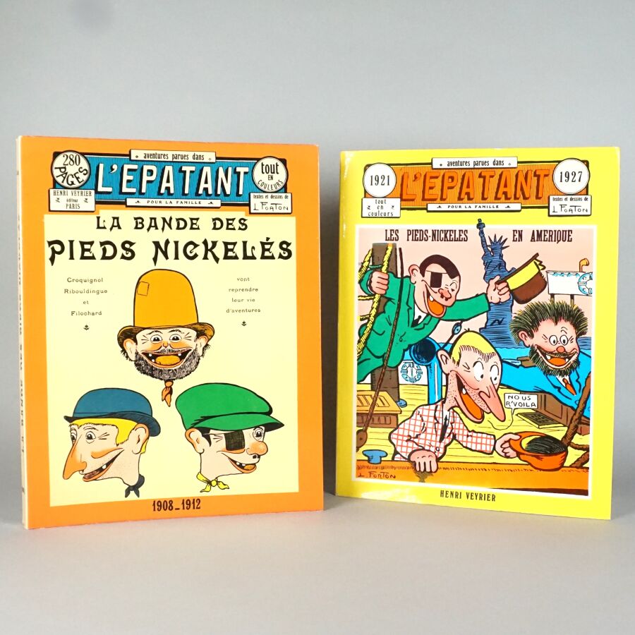LES AVENTURES DES PIEDS NICKELÉS parues dans L'ÉPATANTE, éd. HENRI VEYRIER: Ensemble de 2 reliures annuelles comprenant les années 1908-1912 et 1921-1927.