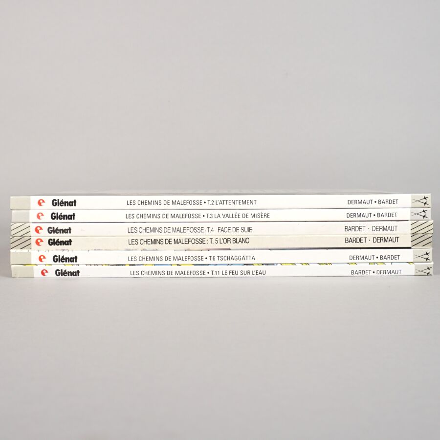 LES CHEMINS DE MALEFOSSE, éd. GLÉNAT, collection Vécu : Ensemble de 6 albums comprenant les tomes 2 à 6 et le tome 11, doublement dédicacés par DERMAUT et BARDET.