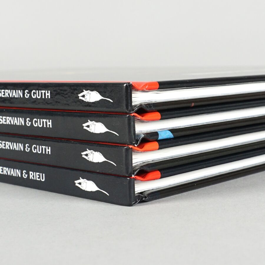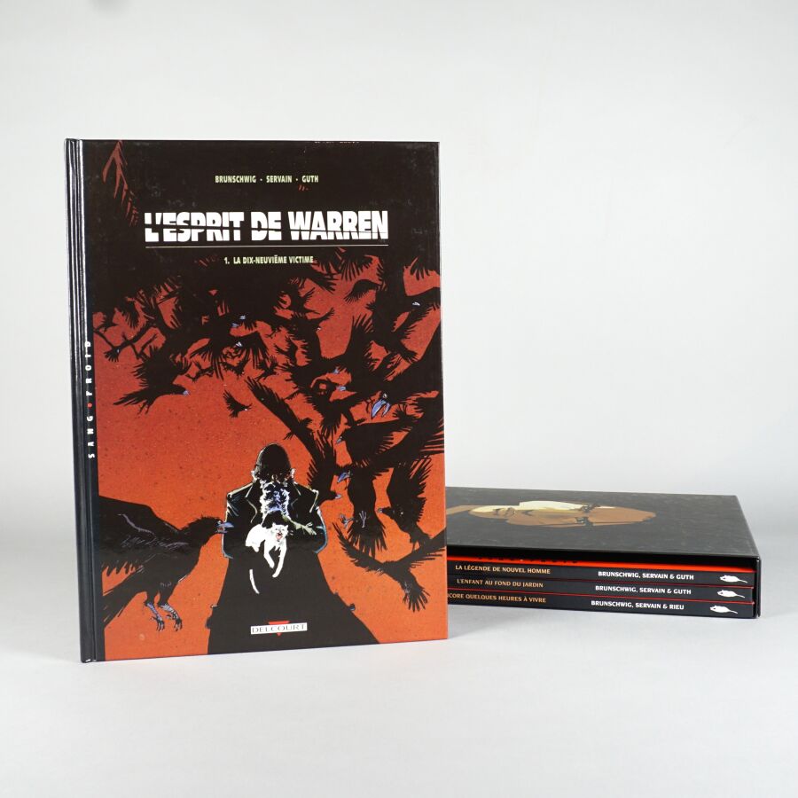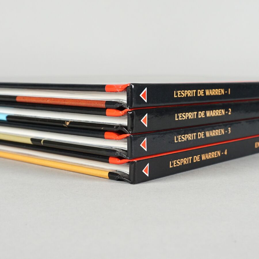 L'ESPRIT DE WARREN, éd. DELCOURT : Ensemble de 4 albums comprenant les tomes 1 à 4, présentés en coffret, le tome 1 doublement dédicacé par BRUNSCHWIG et SERVAIN, les tomes 2, 3 et 4 doublement signés par les auteurs.