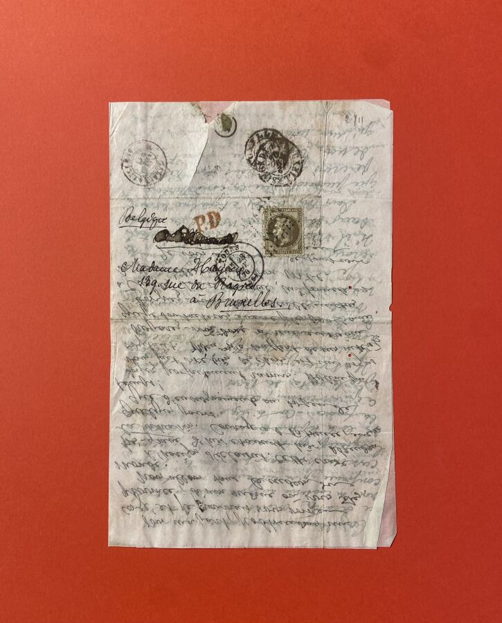 Lettre affranchie avec n°30 OBL GC de Tours (Plis confié) et à coté CAD Tours 3ème 28 nov 70 au verso CAD d'arrivé Bruxelles illisible.