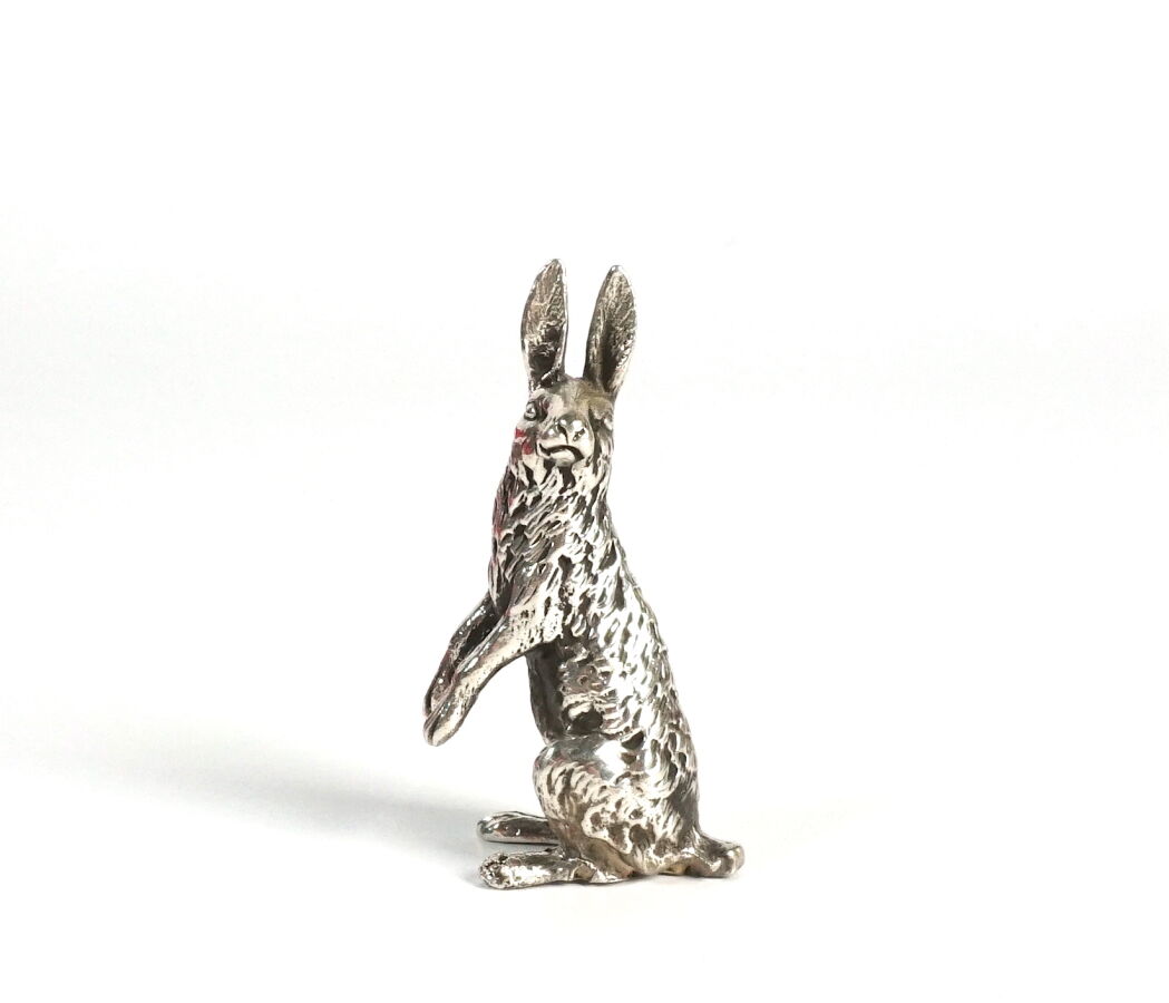 "Lièvre assis", sujet en argent, poinçon Minerve 1er titre, formant presse-papiers, H. 5.5 cm. Poids brut : 58 g environ.