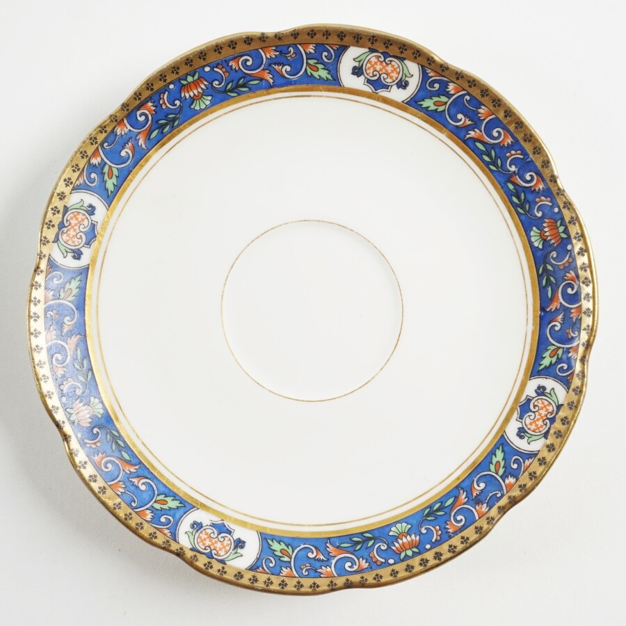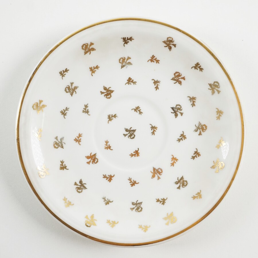 - 12 sous-tasses, aile à décor floral et rehauts d'or, marqué au tampon vert dessous