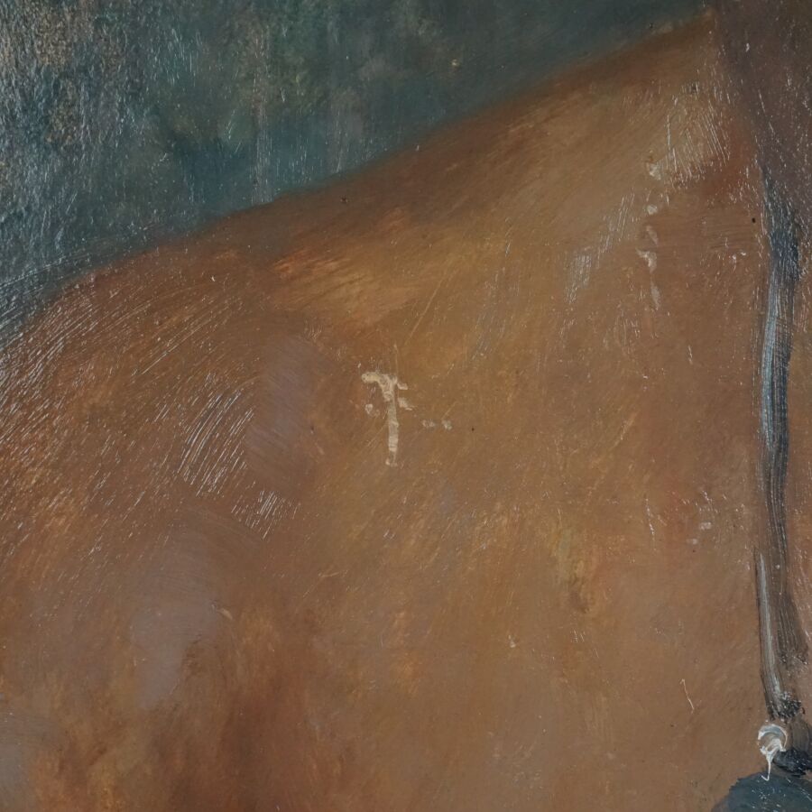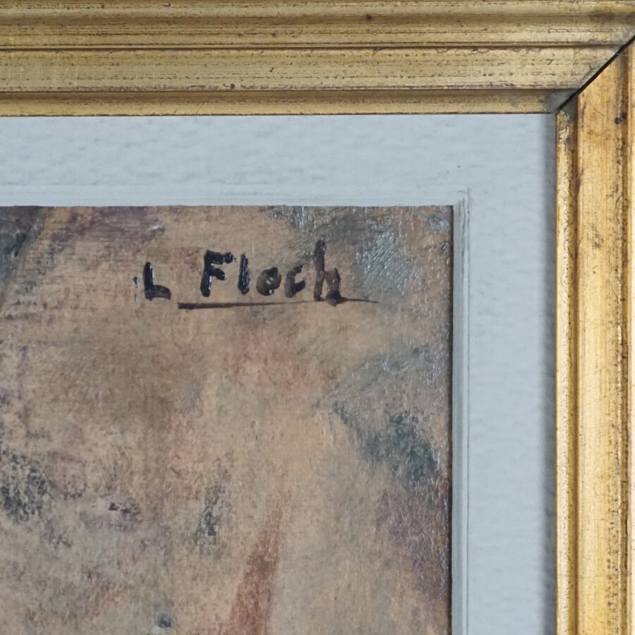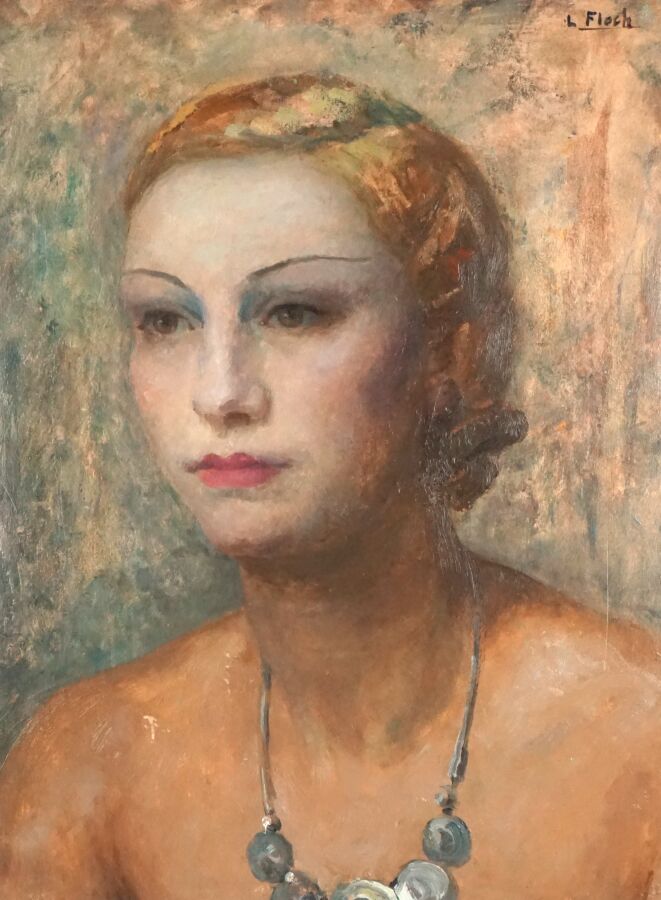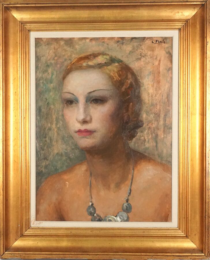 Lionel FLOCH (1895-1972), "Jeune femme au collier", huile sur carton, signée en haut à droite, 54 x 43 cm (griffures).