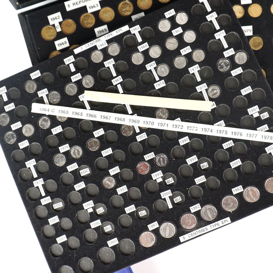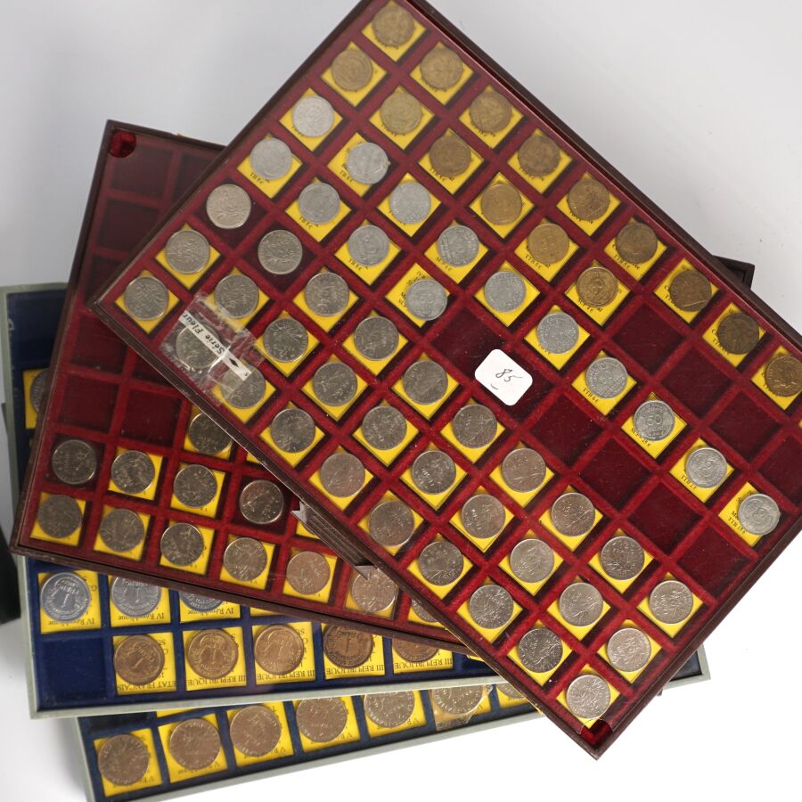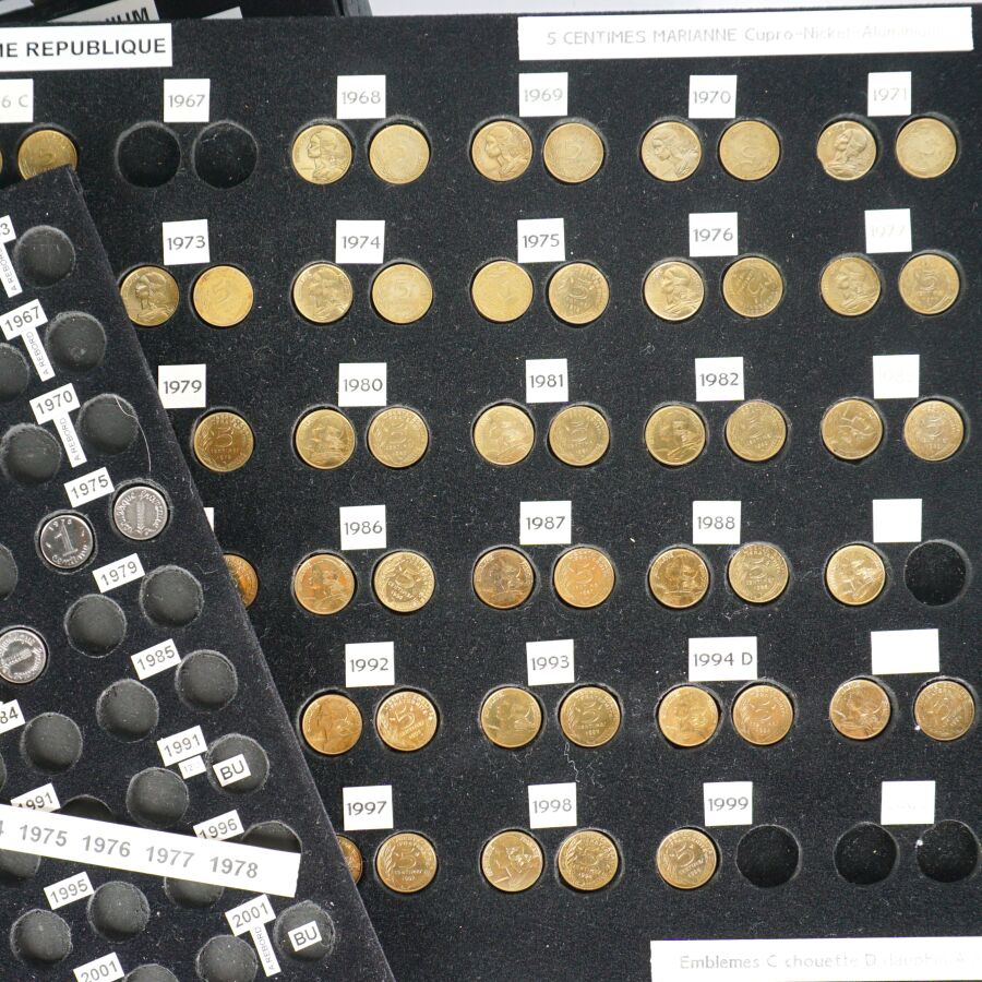 - un ensemble de monnaies en Franc de la 1 ct acier à la 5 Frcs Nickel,