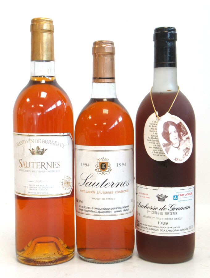- 2 Blles SAUTERNES mise négoce : 1 blle de 1995, 1 blle de 1994.