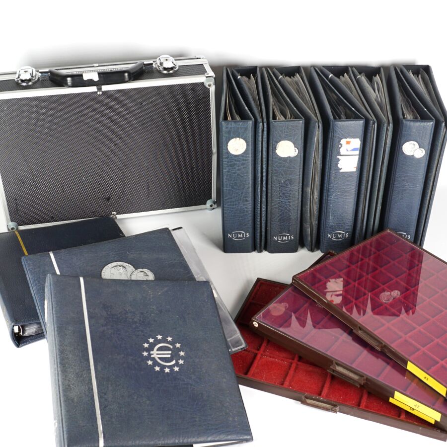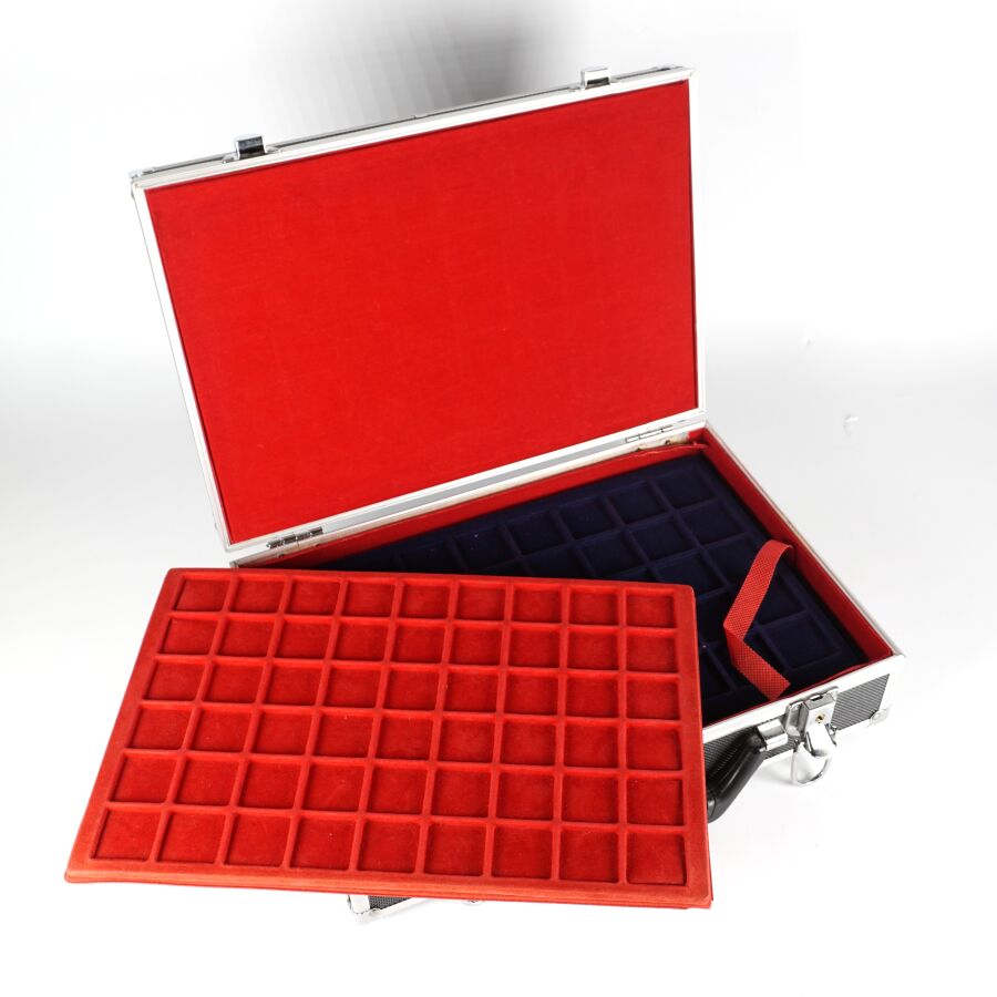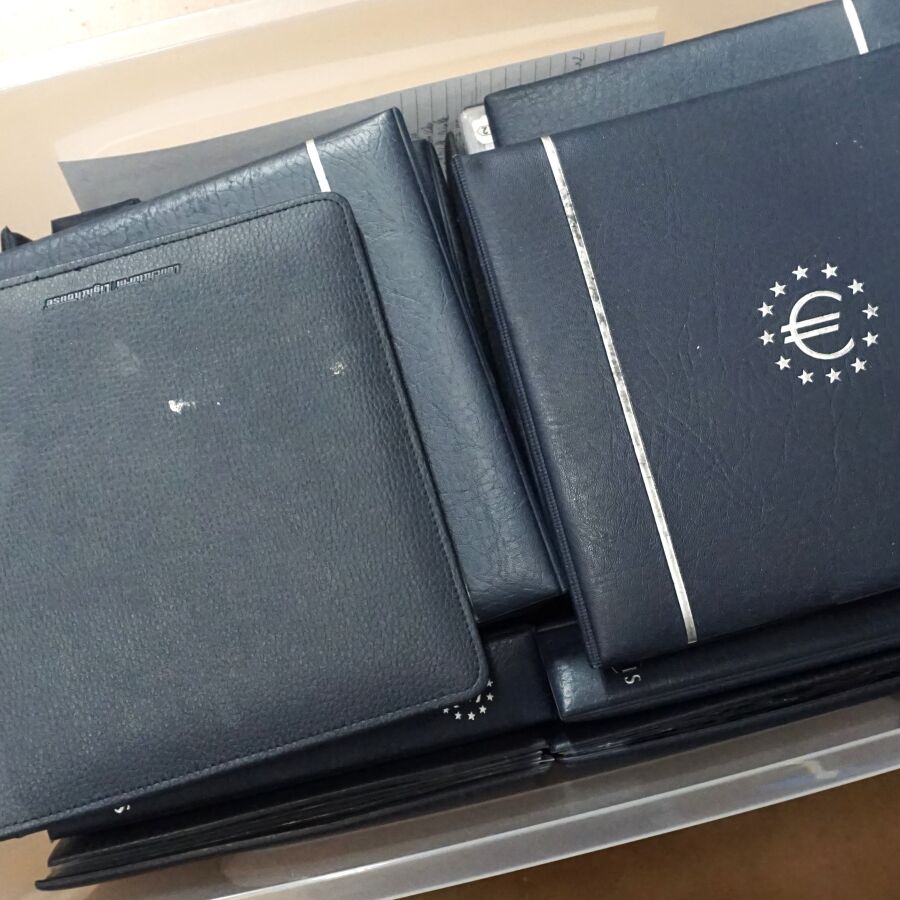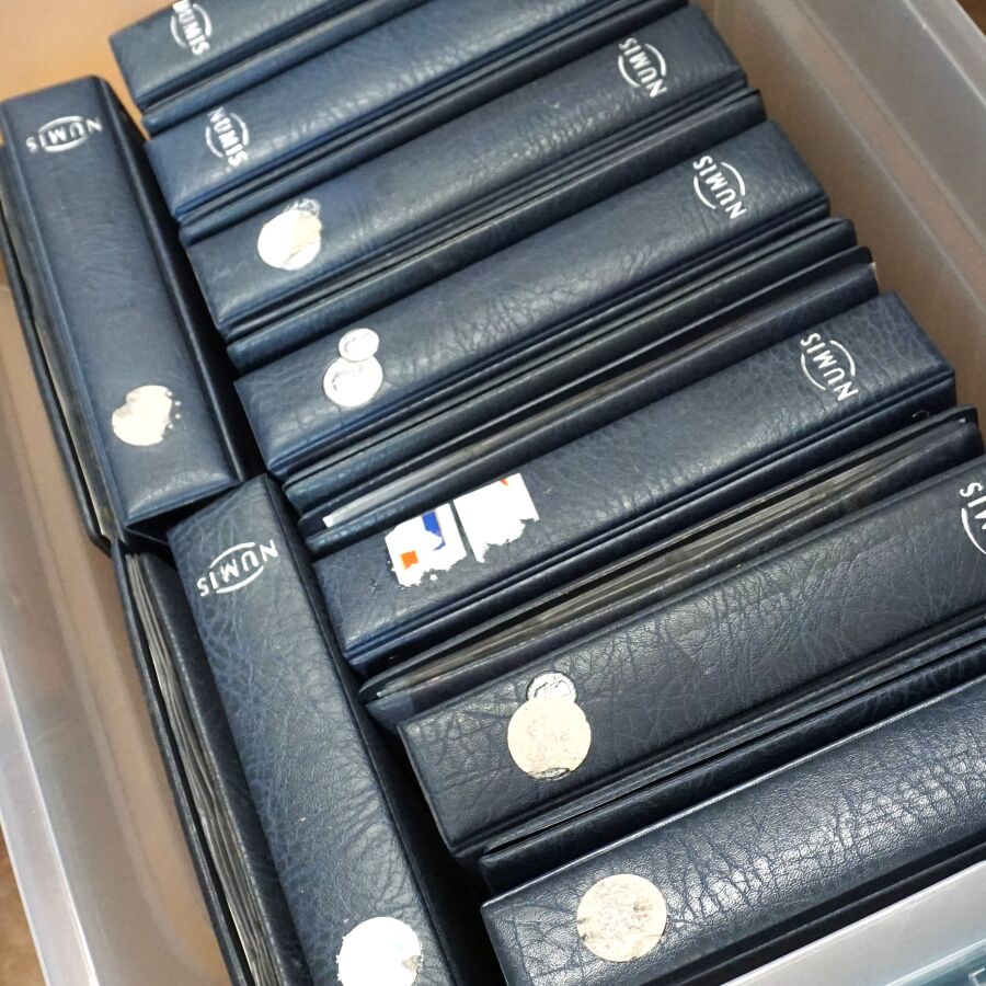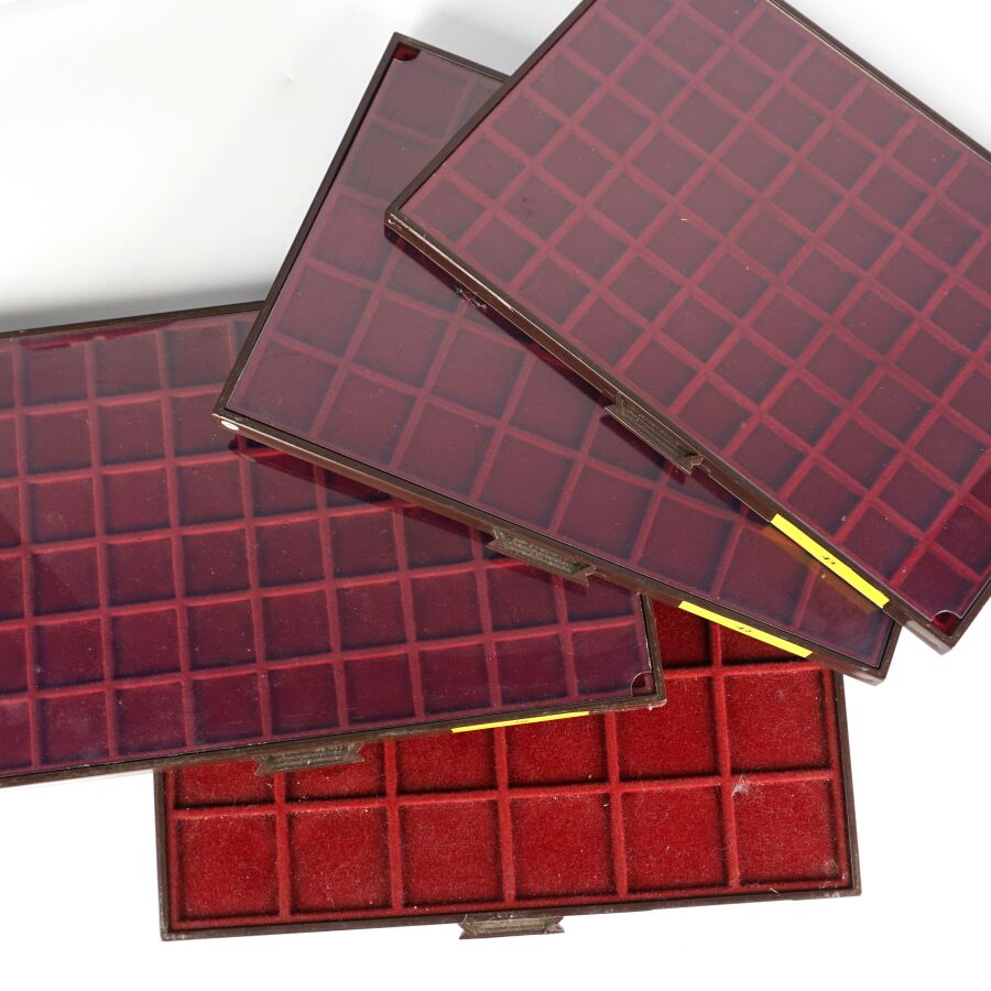 Lot de classeurs et plateaux de rangement numismatique vide (2 caisses), et 1 malette avec plateau.