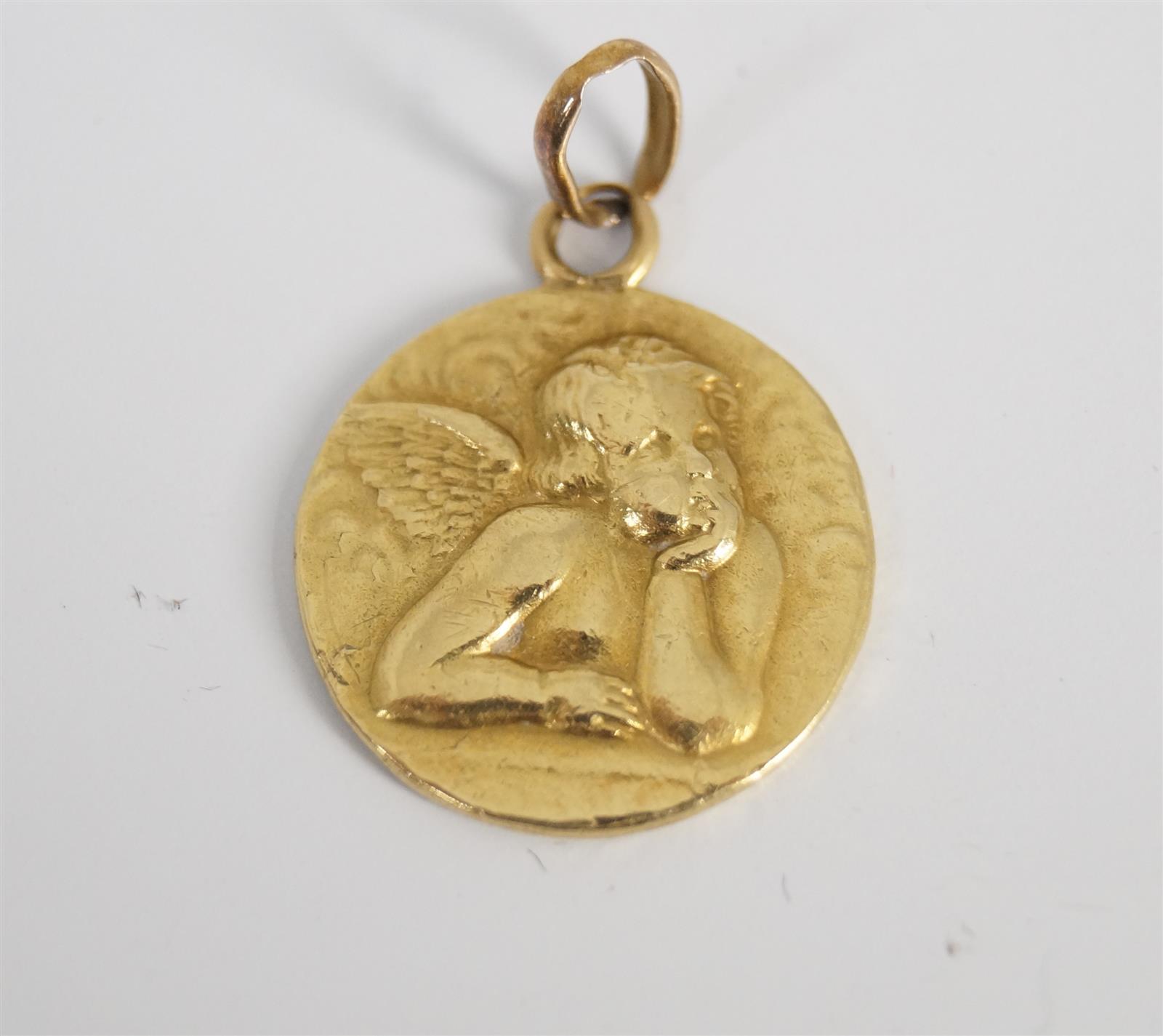 Lot en or 18 K (750/oo) comprenant : une paire de dormeuse, une autre dormeuse, une petite bague, une médaillle et 2 épingles. Poids brut : 10 g environ (en l'état).