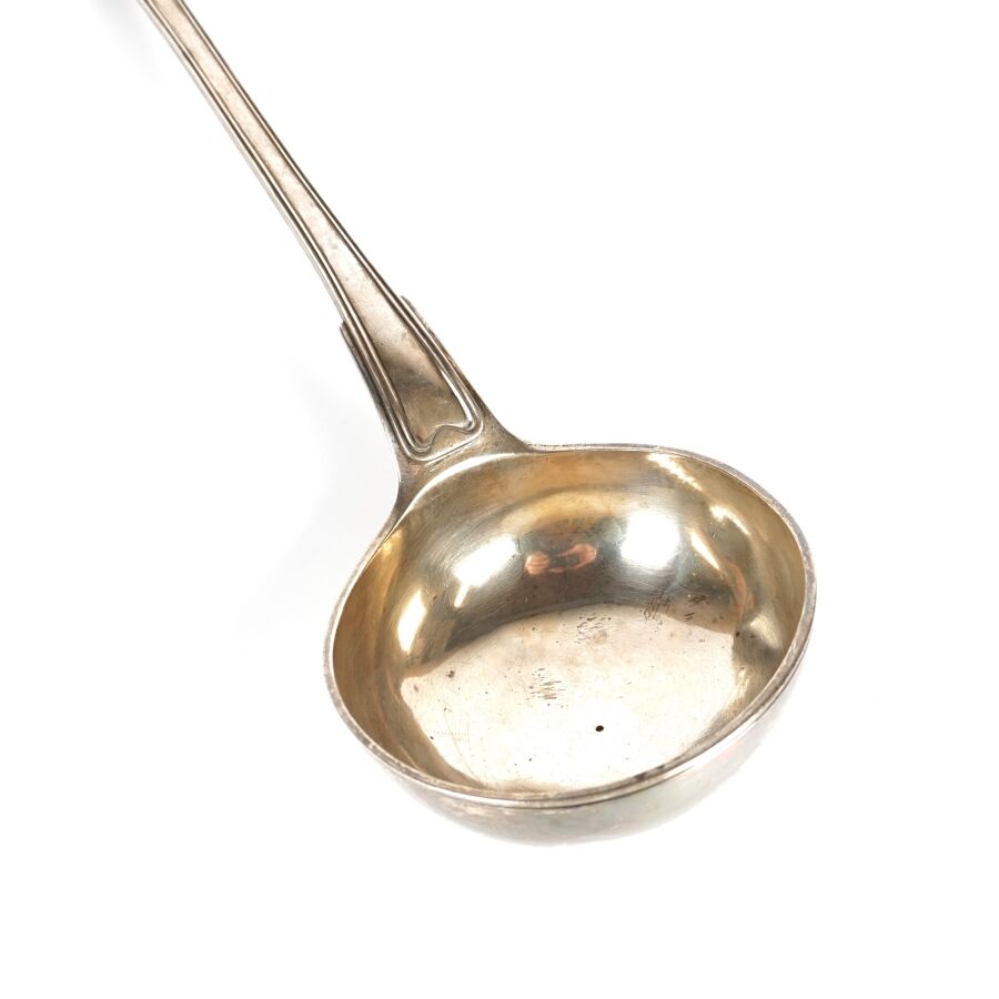 Louche en argent, poinçon au N couronné, poinçon de maître orfèvre "VA" couronné, modèle au filet, probablement nord de la France, 18ème siècle, Poids brut : 320 g. L. 42 cm.