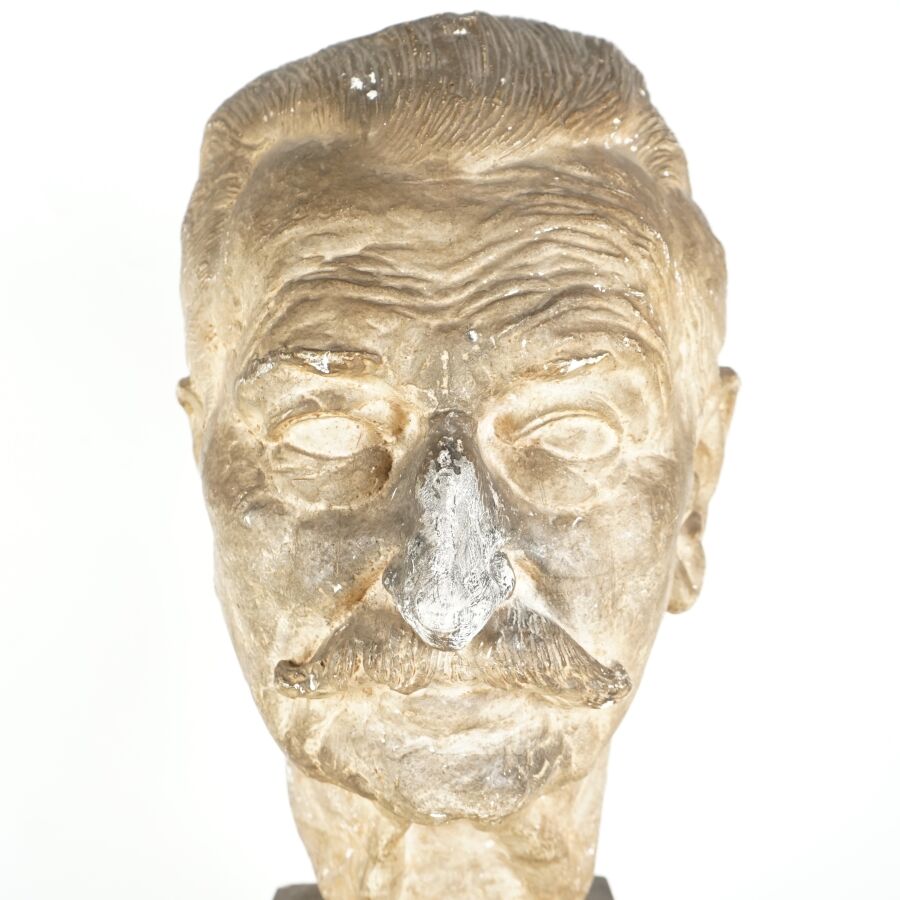 Louis-Henri NICOT (1878-1944), "Buste de Mr. de L'Estourbeillon", buste en plâtre d'atelier légèrement patiné, signé et dédicacé sur la terrasse, H. 45 cm (manques et griffures).