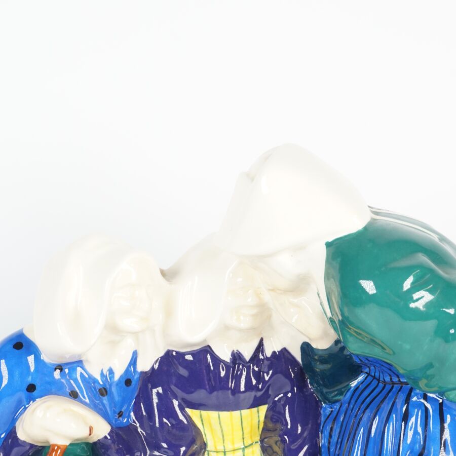 Louis-Henri NICOT (1878-1944) - HENRIOT-QUIMPER : "Les trois commères", groupe en faïence émaillée polychrome, marqué dessous "HB Henriot Quimper France, F. 837 CD", réédition moderne, H. 28 cm.