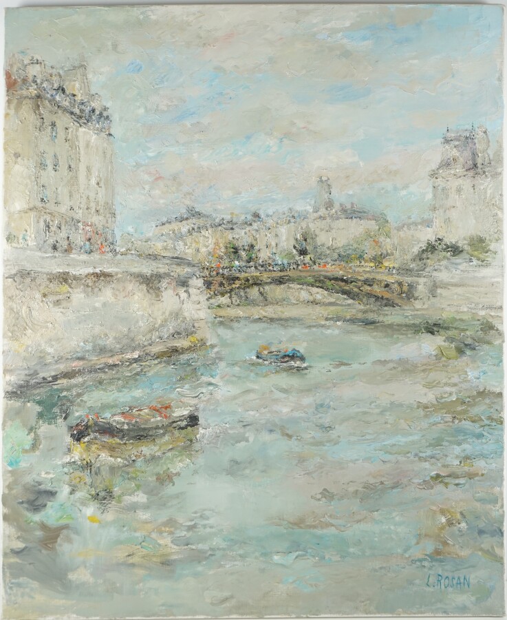 Louis ROSAN (1926-2017), "Le pont Louis-Philippe", huile sur toile signée et datée en bas à droite, 73 x 60 cm.