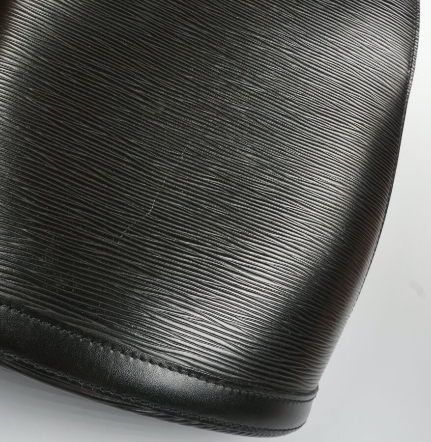 Louis VUITTON : Sac "Cluny" en cuir épi noir, avec patte de fermeture et fermoir oeillet en métal doré, bandoulière réglable avec clous dorés, intérieur gris avec poche, H. 29 cm, L. 26 cm, 17 cm (infimes petites traces d'usure à la base, sinon très bel état).