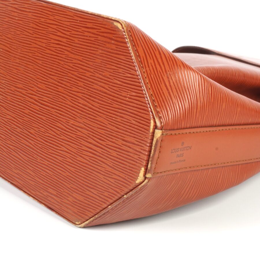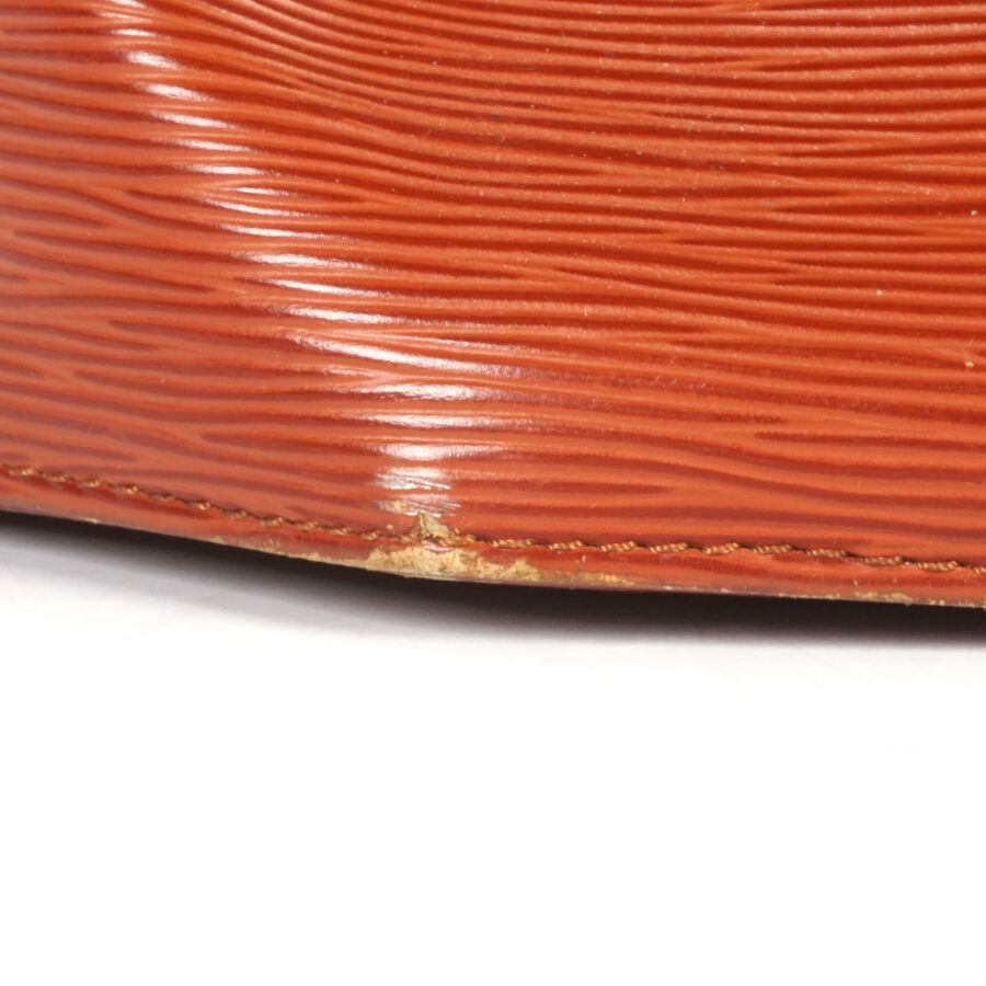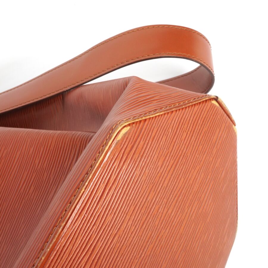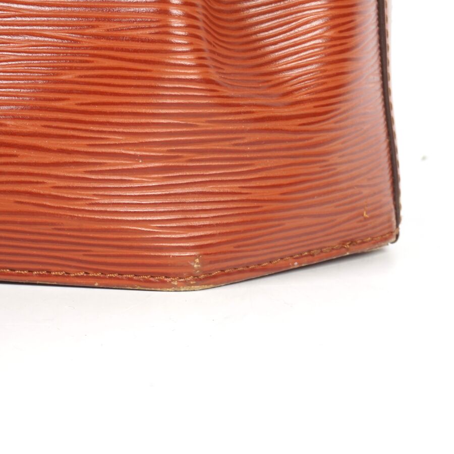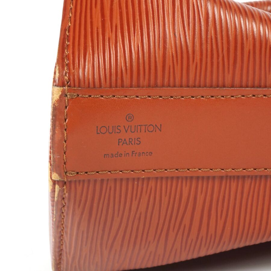 LOUIS VUITTON : Sac seau modèle "Twist Bucket" en cuir épi et lisse couleur cognac, fermeture en partie haute par deux sangles dont une logotée "LV" et un bouton pression, intérieur en suède marron, bandoulière en cuir ajustable pour porté épaule, avec sa pochette intérieure amovible en cuir épi, fermeture zippée, reliée au sac par une accroche, Dim. 35 x 30 x 15 cm (petites usures et griffures au cuir).
