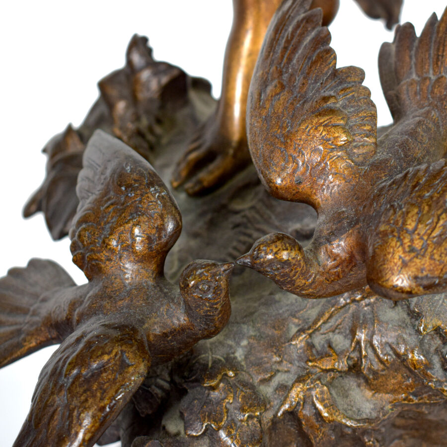Luca MADRASSI (1848-1919), "Lutins des bois", bronze sur socle en marbre, signé, 103 x 38 cm. (traces d'usures sur le bronze, éclats sur le socle)