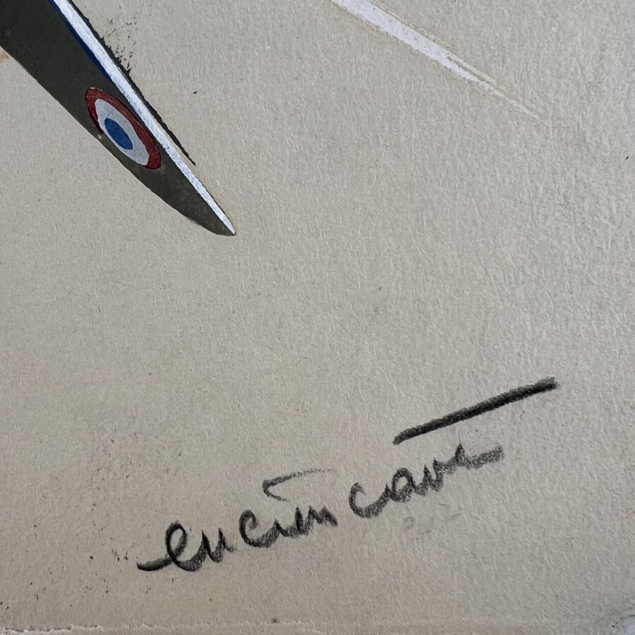 Lucien CAVE (XXe), "Avion en vol", gouache signée en bas à droite, 24, 5 x 22 cm. (humidité).