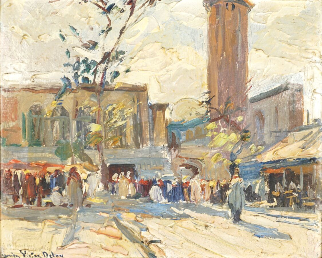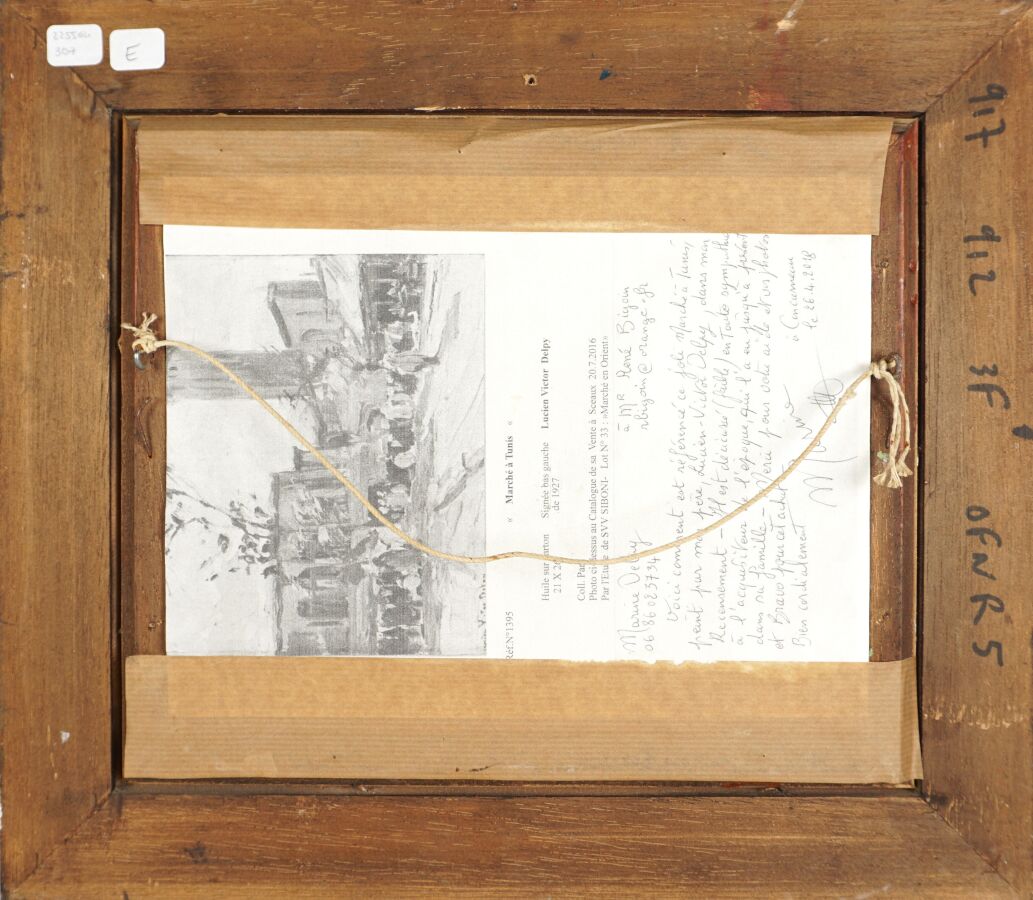 Lucien Victor Félix DELPY (1898-1967), "Marché à Tunis" 1927, huile sur carton signée en bas à gauche, 21 x 26 cm.