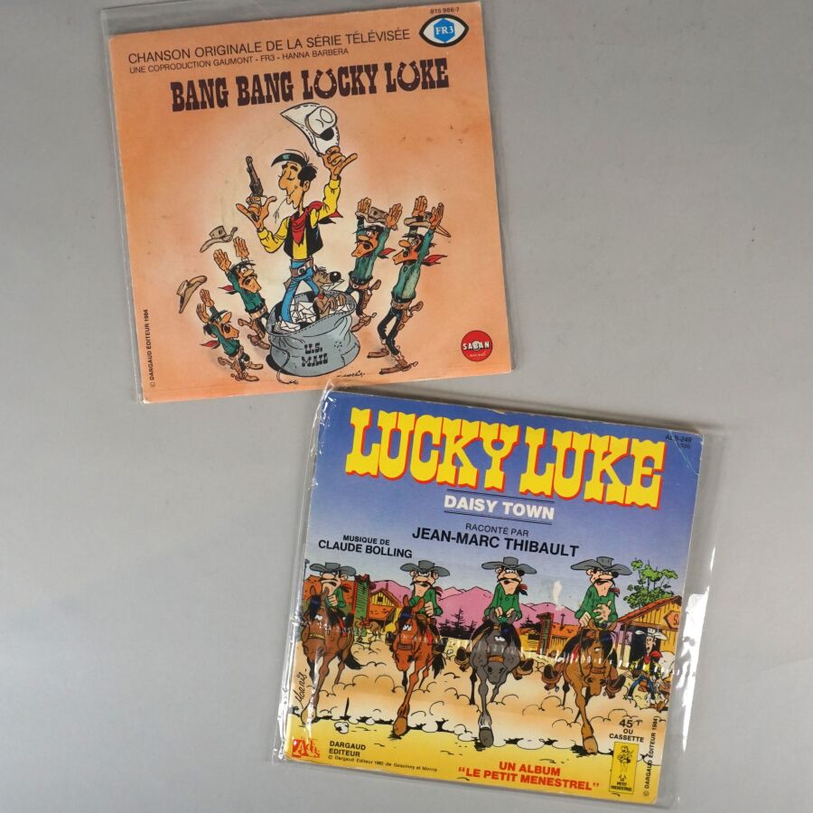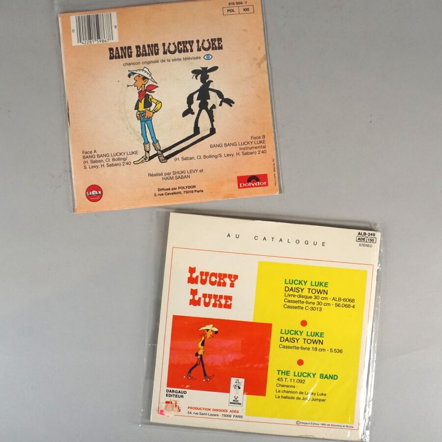On y joint 2 CDs 45 tours : Bang Bang Lucky Luke, Lucky Luke Daisy Town.