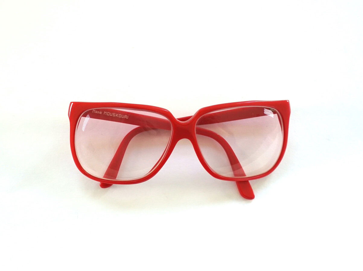 Lunettes de vue, éditées au nom de Nana Mouskouri, monture rectangulaire cerclée rouge.