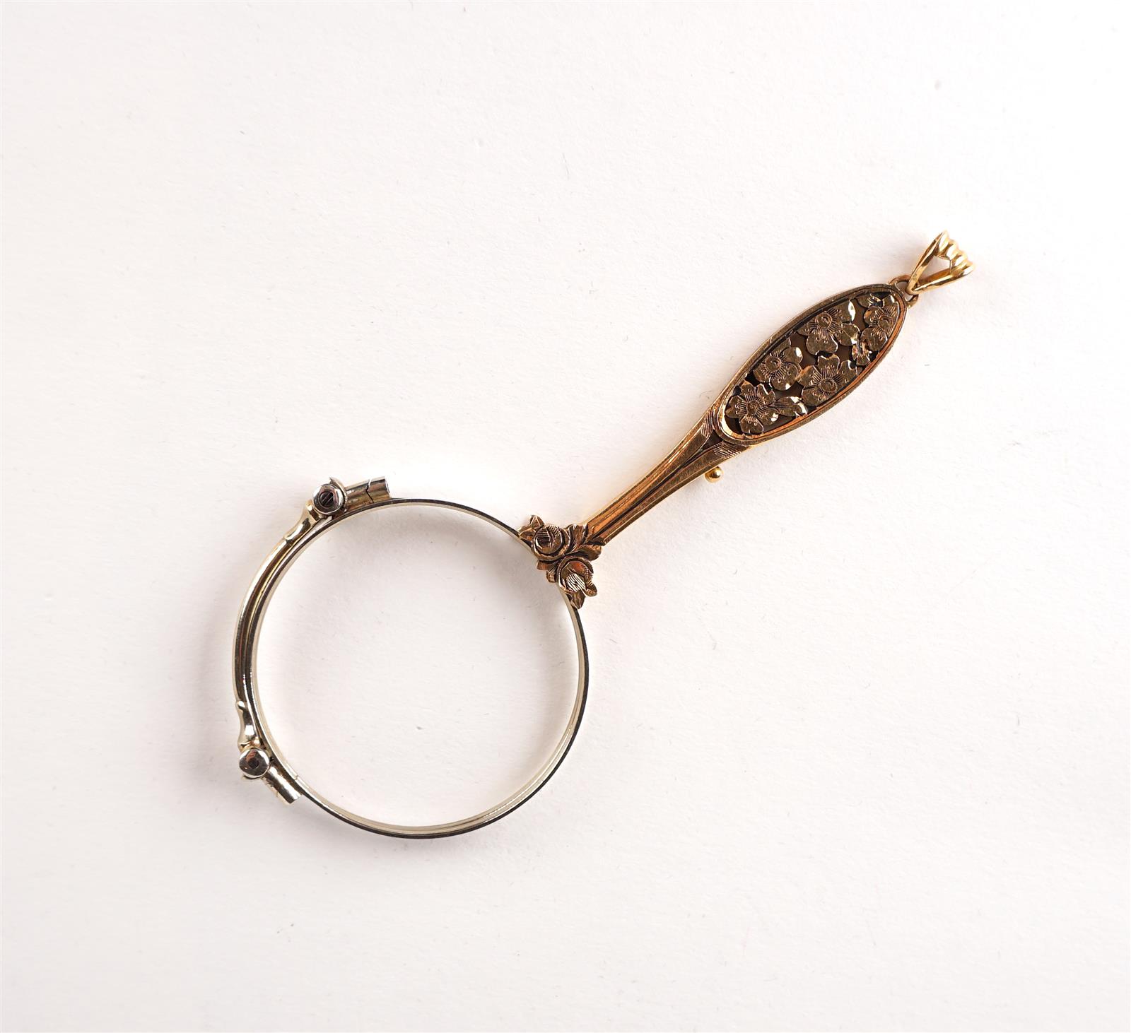 Lunettes en or jaune 18 K (750/oo), la branche ajourée à décor de fleurs, sans les verres. Poids brut : 20 g environ.