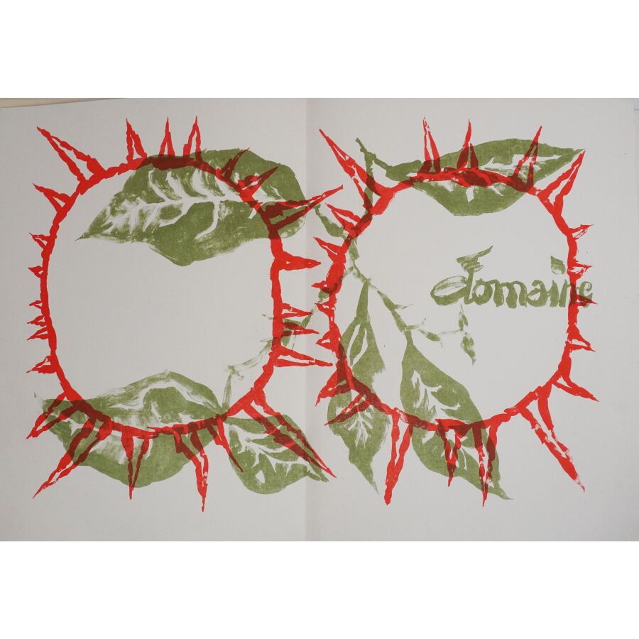 LURÇAT (Jean). Domaine. sl, Pierre de Tartas, 1957. In-folio, en ff., couverture illustrée imprimée sur parchemin, sous emboîtage en toile orangée illustré.