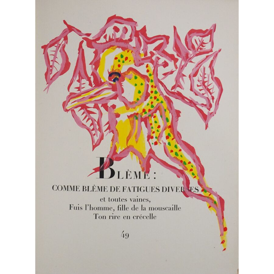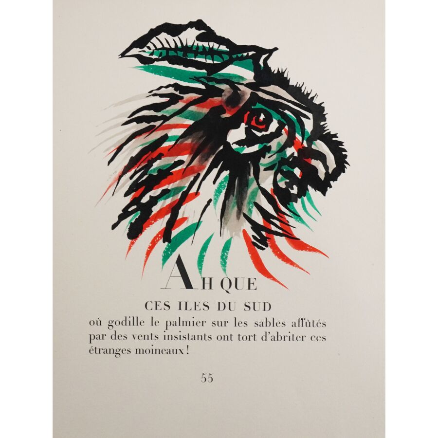 "Ce qui caractérise depuis une quinzaine d'années l'oeuvre peinte et tissée de Lurçat c'est son caractère poétique. Il était donc logique que l'artiste, sollicité par l'éditeur, ait trouvé goût à écrire ces poèmes qui ne furent en fait que prétextes aux illustrations de cet ouvrage. Vivant retiré dans un bourg perdu du centre de la France, disposant de ces loisirs que nous refusent les villes, Jean Lurçat n'a pas reculé devant la considérable besogne de revenir, pinceau à la main, sur chaque planche, ajoutant selon son humeur une ou plusieurs couleurs voire même modifiant le dessin de la composition. Ainsi fut assuré à chaque exemplaire de cet ouvrage un caractère particulier et personnel.