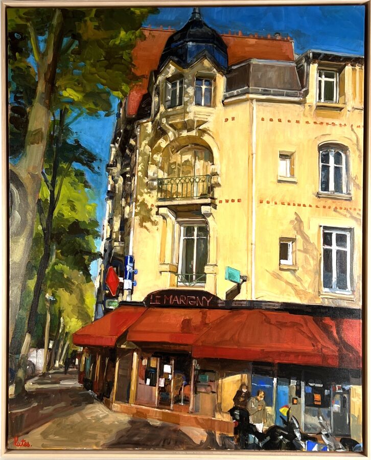 LUTES (1987), "Le Marigny", gouache sur toile de lin, signée en bas à gauche, 81x 64,5 cm.