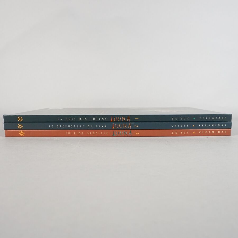 LUUNA, éd. SOLEIL : Ensemble de 3 albums comprenant les tomes 1 et 2 en couleurs et le tome 3 édition spéciale sépia, dédicacés par KERAMIDAS.