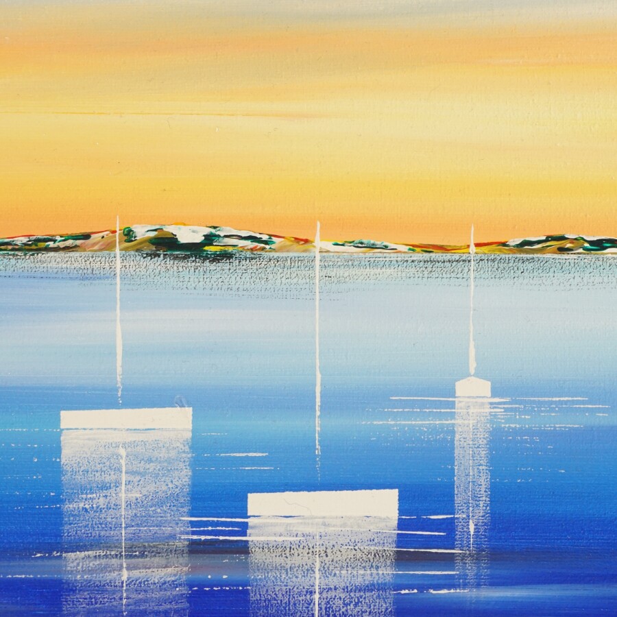 M. MEHENNI (1965-), "Le lagon", huile sur toile signée en bas à droite, titrée et dédicacée au dos, 38 x 46 cm.