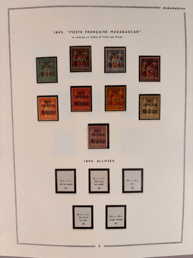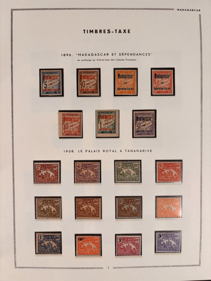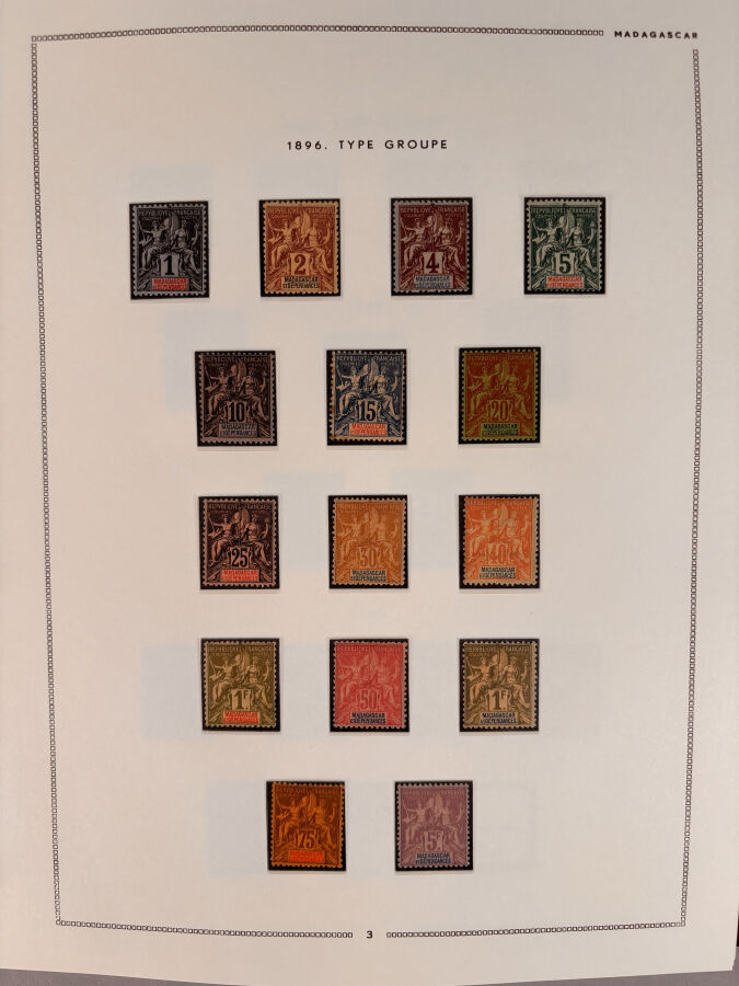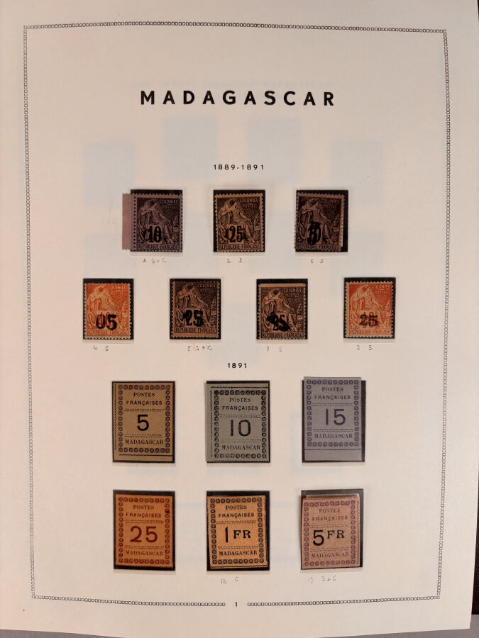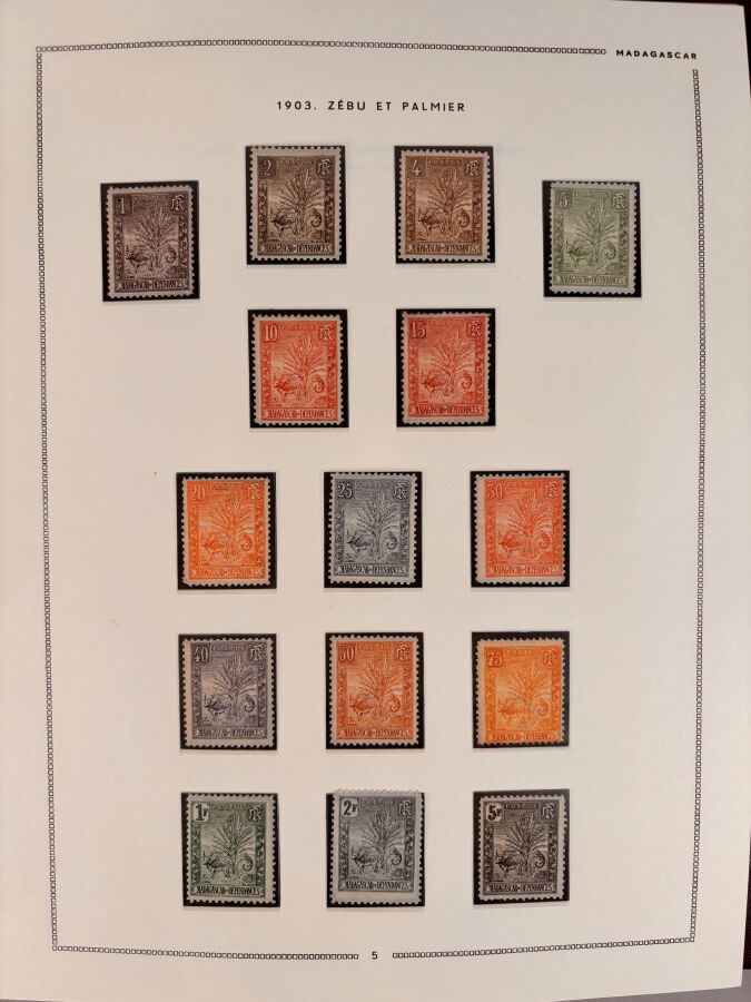 MADAGASCAR - MARTINIQUE - MAURITANIE - NIGER: En album MOC avec pochettes, belle collection de TP N** et N*, bonnes valeurs, très complète, quelques fac-similés, forte cote.