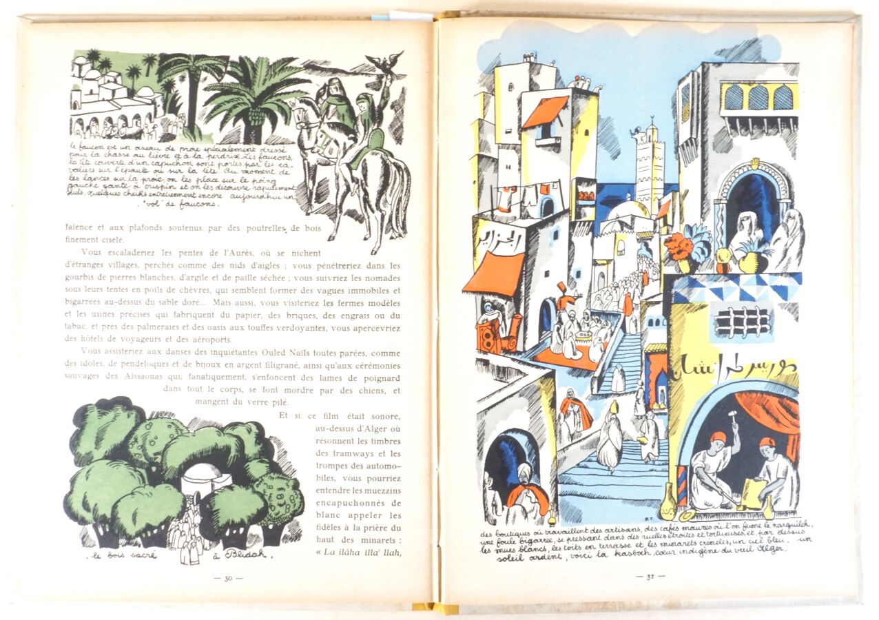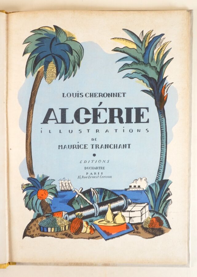 [MAGHREB] - CHERONNET (Louis) - Algérie - Paris ; Éditions Duchartre, [vers 1930] - 1 volume In-folio - Gardes décorées et belles illustrations en couleurs au pochoir par Maurice Tranchant - Reliure éditeur cartonnage illustré couleurs au 1er plat, dos toilé jaune - Bel exemplaire.