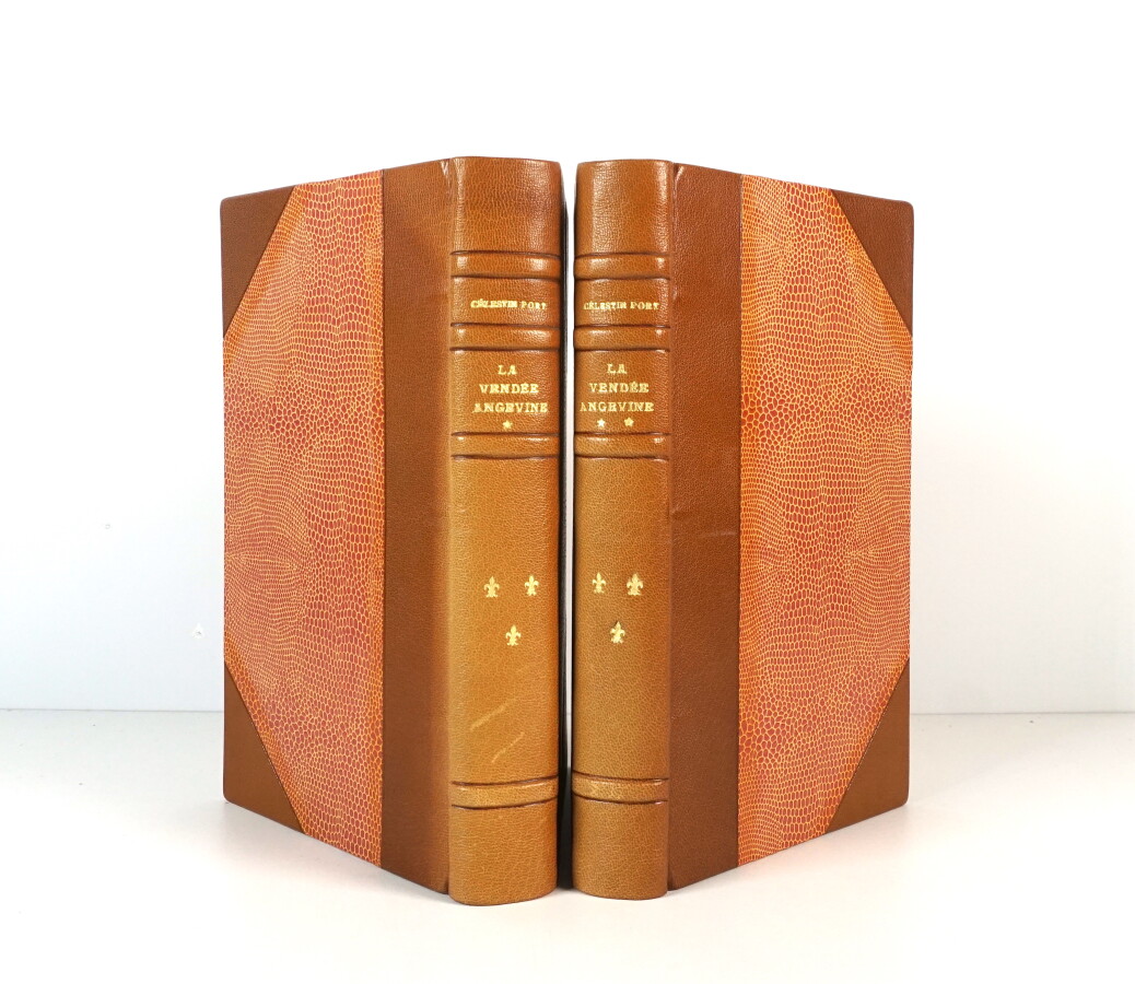 [MAINE-ET-LOIRE - CHOUANNERIE] - PORT (Célestin) - La Vendée Angevine. Les origines. L'insurrection (janvier 1789-31 mars 1793) d'après des documents inédits et inconnus - Paris ; Librairie Hachette et Cie, 1888 - 2 volumes In-8° - Quelques rousseurs éparses - Reliure moderne demi-chagrin havane à coins - Couvertures (légèrement salies) conservées - Dos à nerfs ornés, titrés et tomés or (légèrement passés uniformément) - Bon exemplaire.