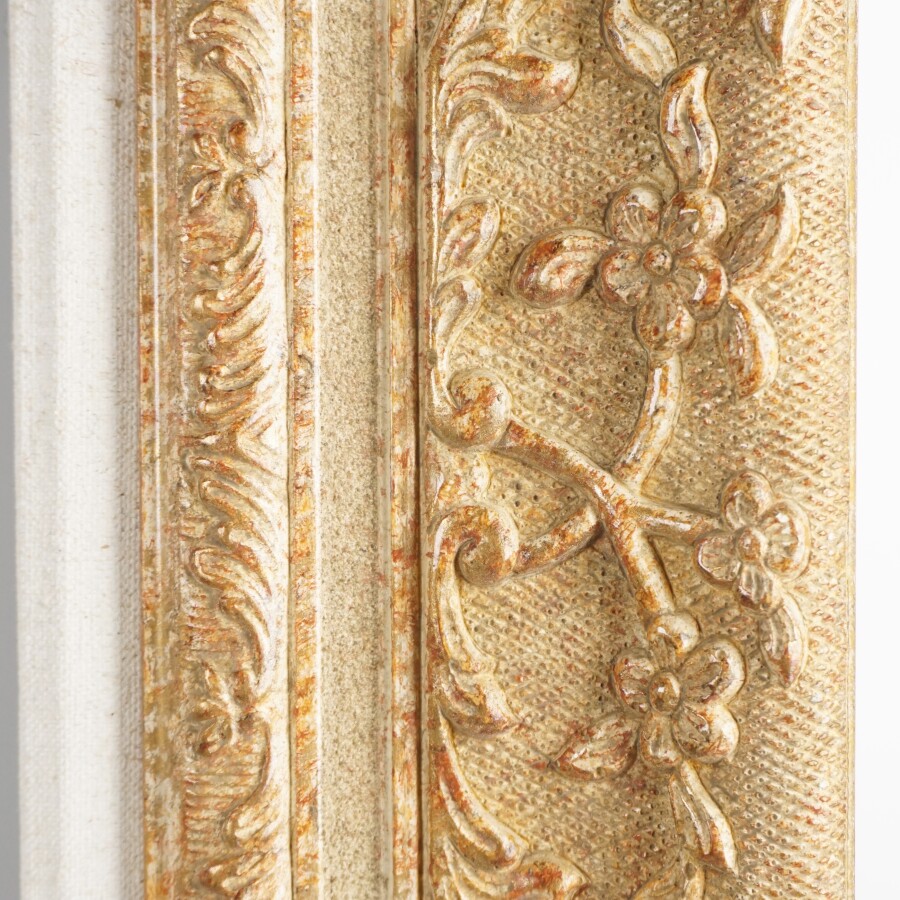 MAISON RG : Cadre de style Montparnasse, assemblage à claies, à décor de coquilles et de rinceaux, 63.5 x 52.5 cm.