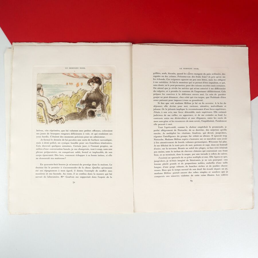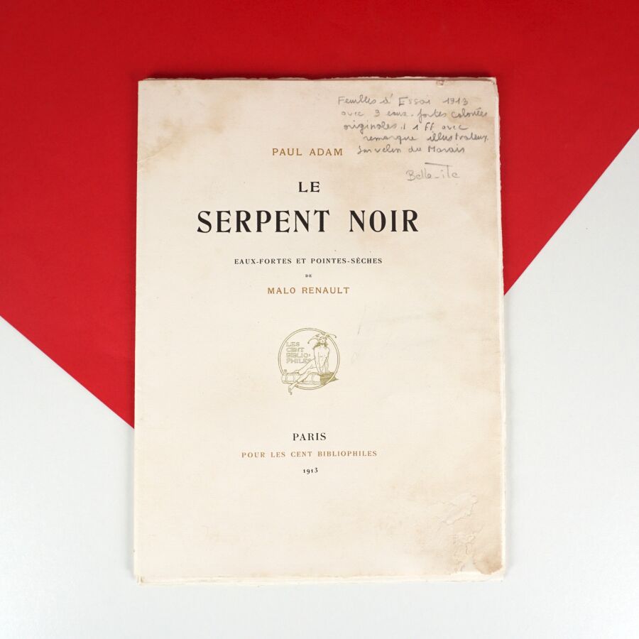 MALO-RENAULT (Émile Auguste Renault dit) & ADAM (Paul). Le serpent noir. Paris, Les cent bibliophiles, 1913. In-4 de 11 ff., en feuilles sous couv. imprimée (restaurée).